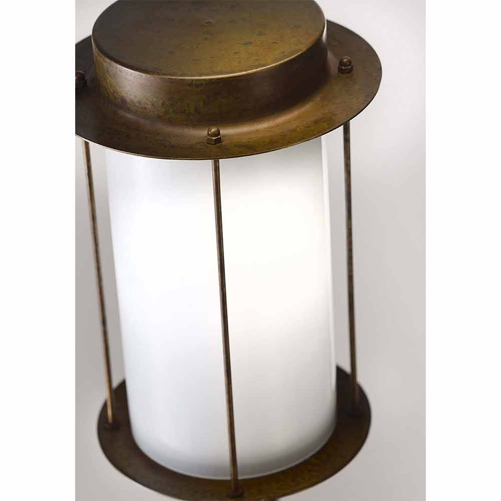 Aplique de exterior en vidrio blanco y latón industrial fabricado en Italia.