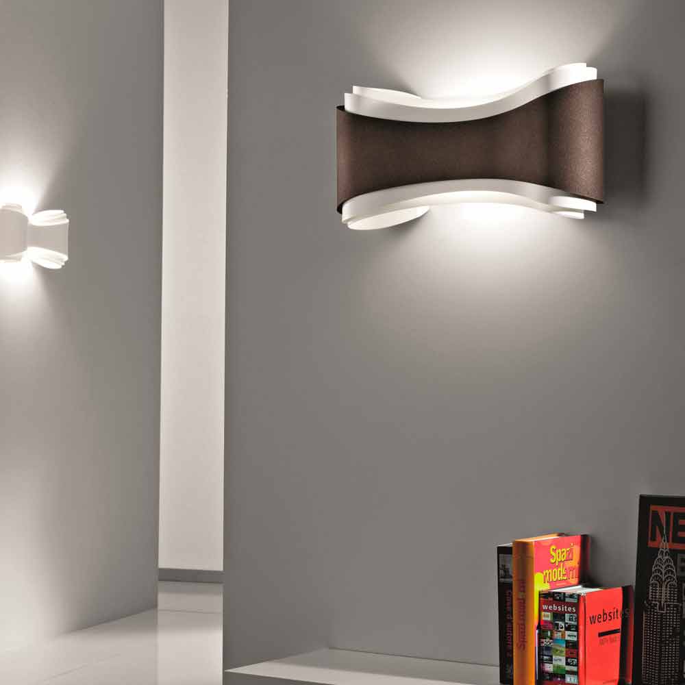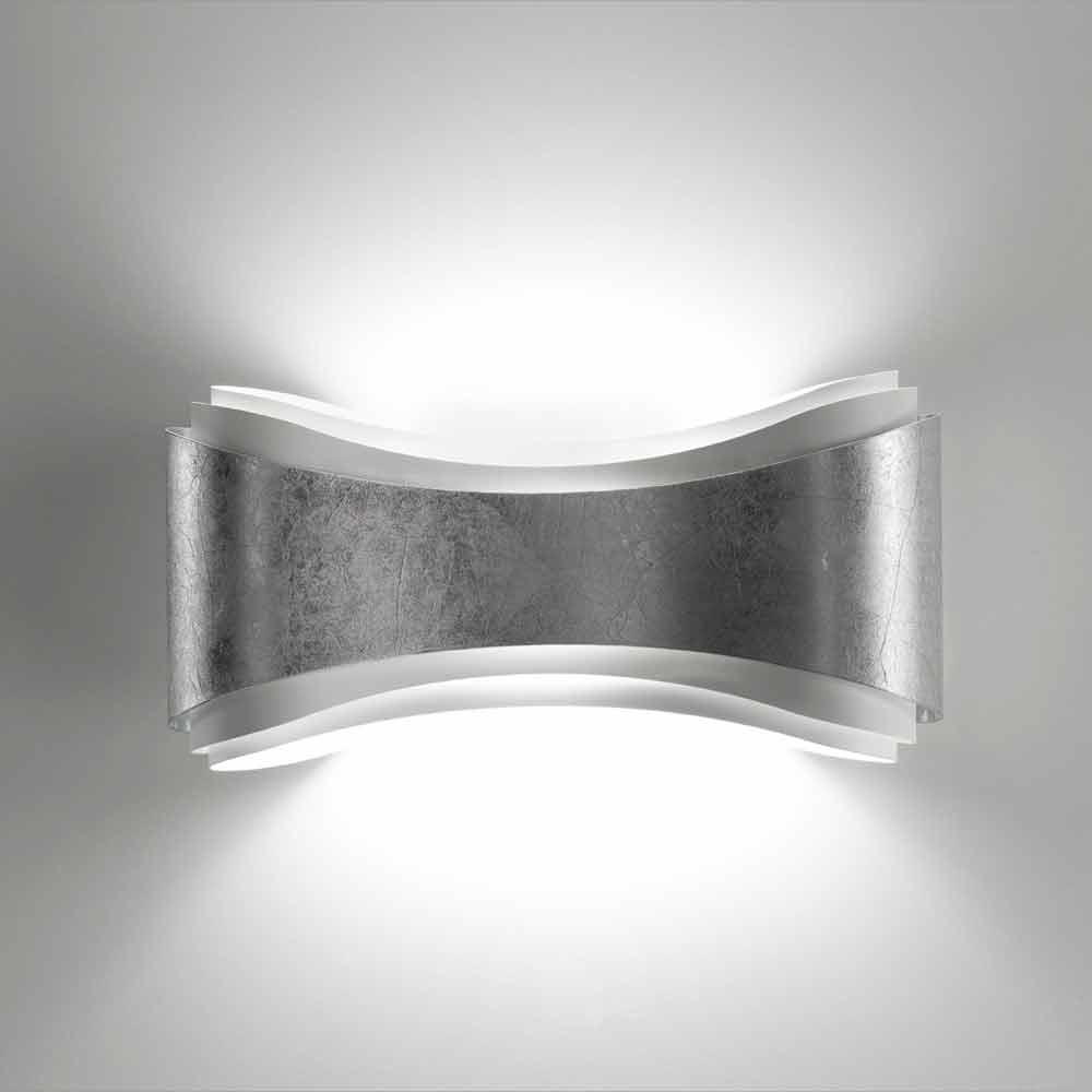 acero de la pared de la lámpara Selene iónica y vidrio fabricado en Italia, 40x12H20cm Ionic es una lámpara formada por bandas D 'hábilmente a mano de acero doblada con el fin de crear una forma fluida y compuesto. La parte frontal está disponible en varios colores y acabados. Lit por bombillas normales o LED. NB bombillas no están incluidos.