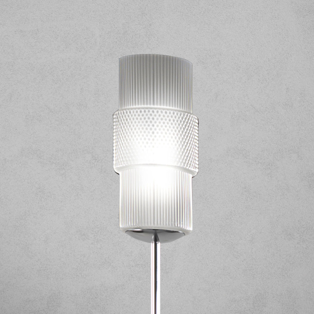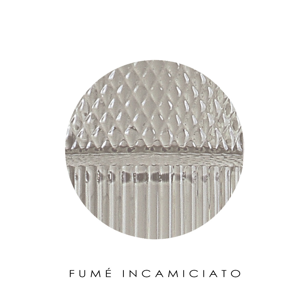 Una joya de refinada elegancia hecha de vidrio laminado o transparente trabajado con procesamiento de rayas, perfecto para crear una iluminación fascinante y maravillosos juegos de luces en cualquier espacio doméstico.