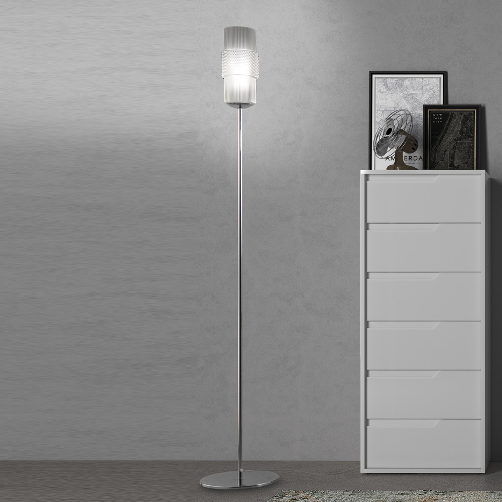 Lámpara de pie artesanal en cristal Venecia soplado a mano y metal cromado.