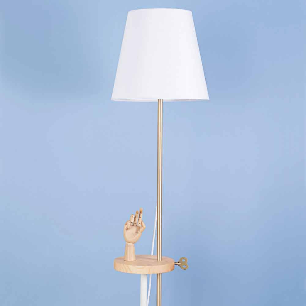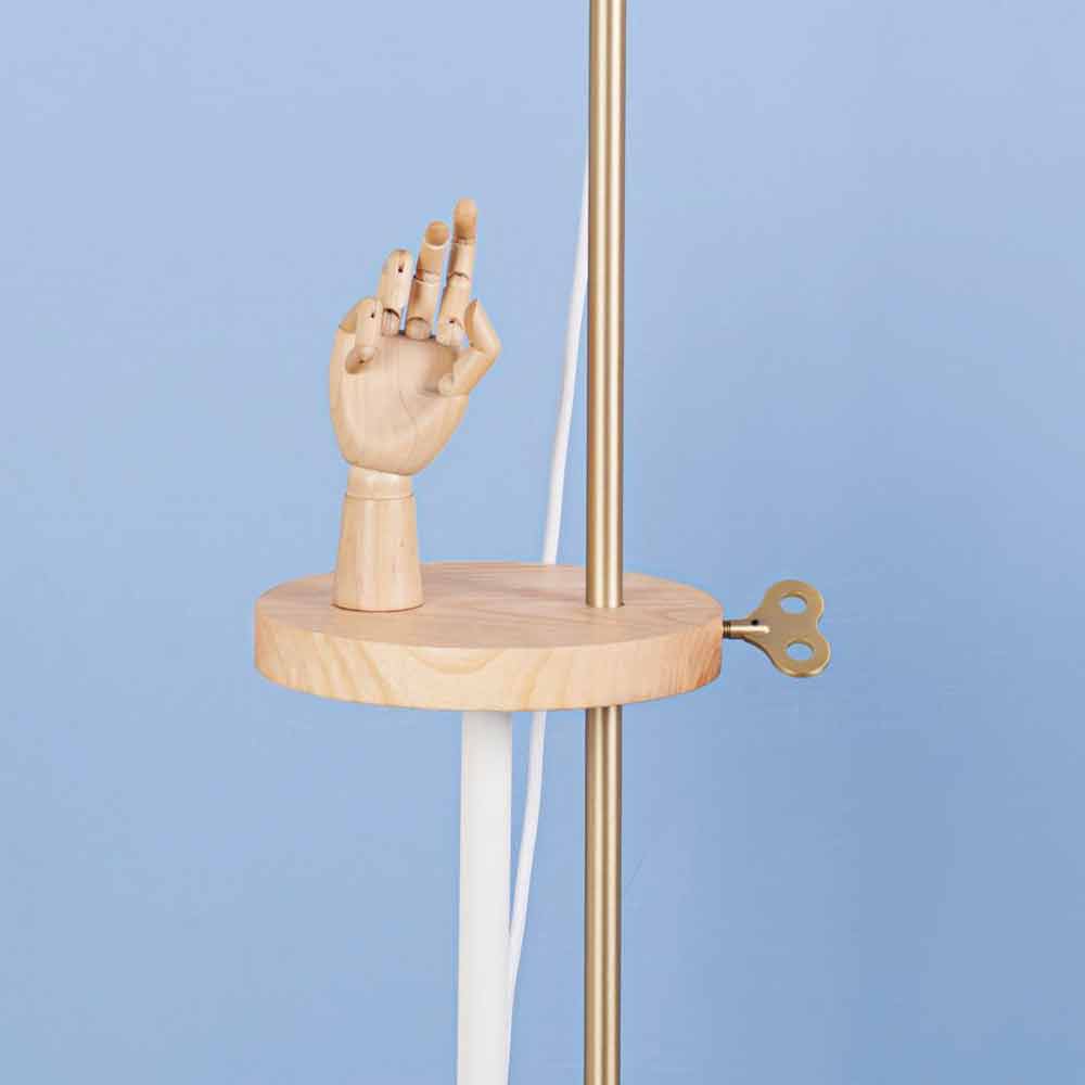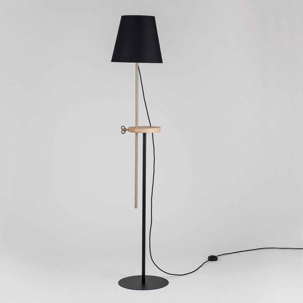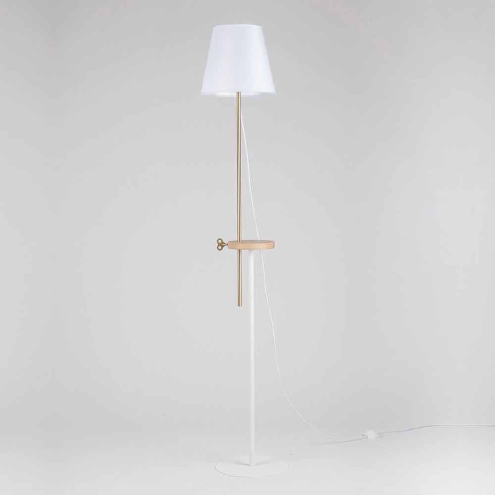 Esta lámpara de pie está íntegramente fabricada en Italia y representa la fusión perfecta entre diseño y funcionalidad sin descuidar el aspecto decorativo y visual. Su base y tulipa son de acero pintado RAL mientras que la parte central de la lámpara tiene una repisa de madera de fresno útil como superficie de apoyo pero también y sobre todo como elemento técnico fundamental para mover la parte luminosa a varias alturas. El inserto en forma de llave fabricado en latón permite entonces fijar la lámpara a la altura que prefieras, logrando iluminar todo el ambiente o un espacio más reducido, ideal por ejemplo para leer cómodamente un libro en el sofá.