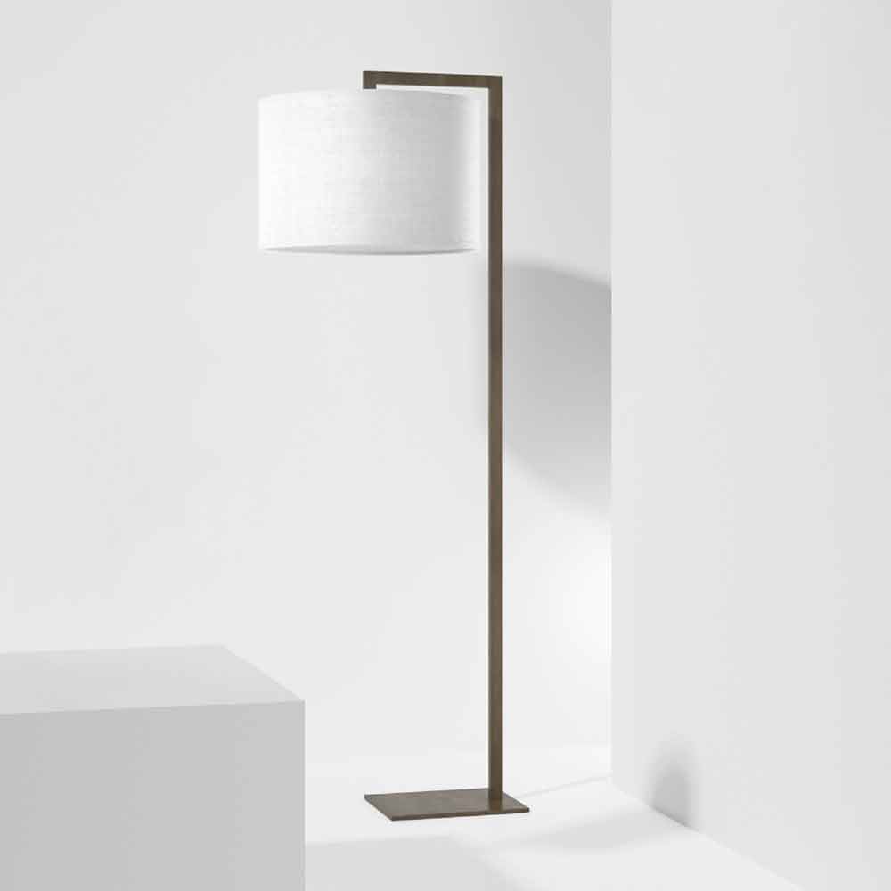 Lámpara de pie de diseño con estructura metálica y pantalla de lino blanco Made in Italy.