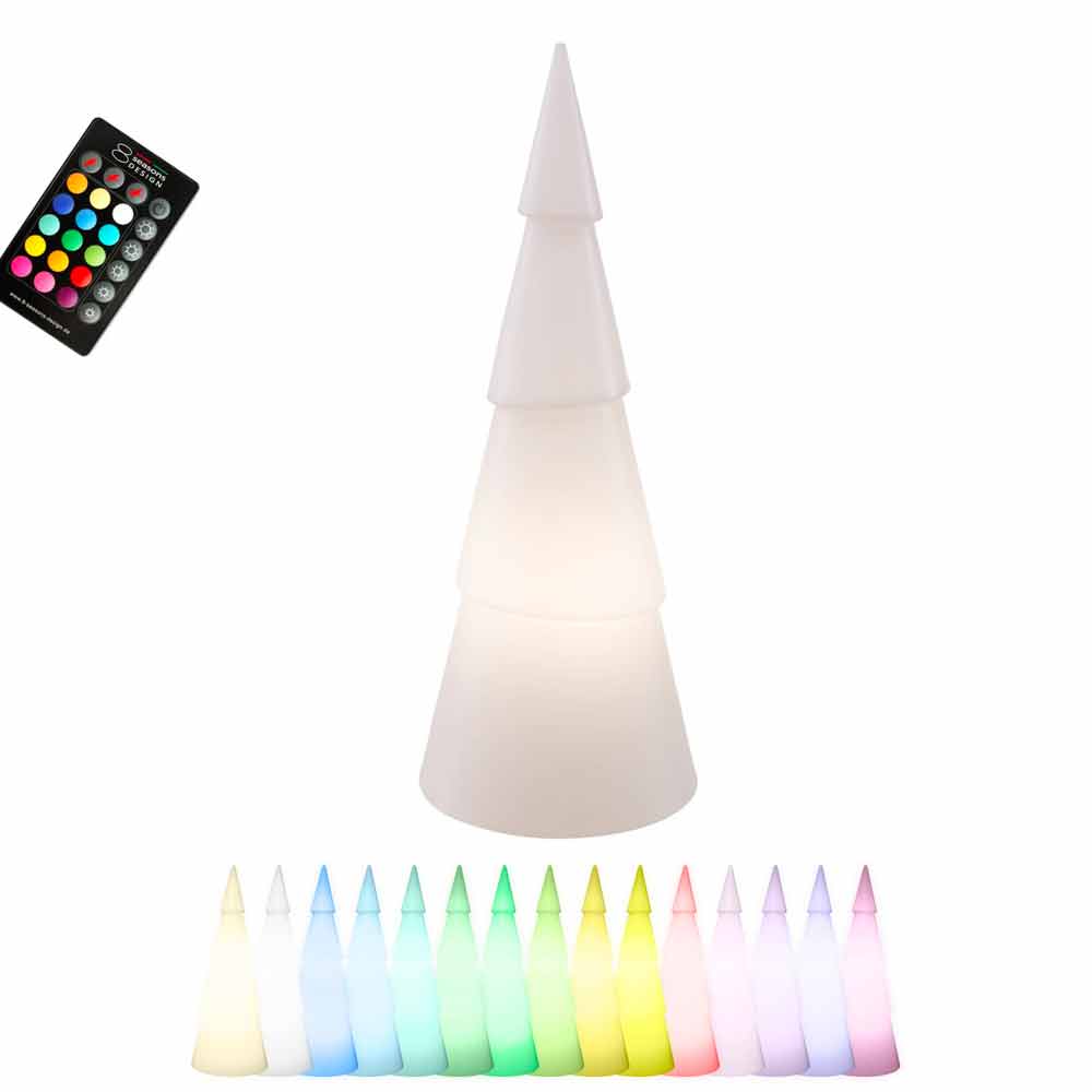Lámpara de pie de diseño LED o solar en forma de árbol de Navidad cónico en 3 tamaños para uso interior o exterior.