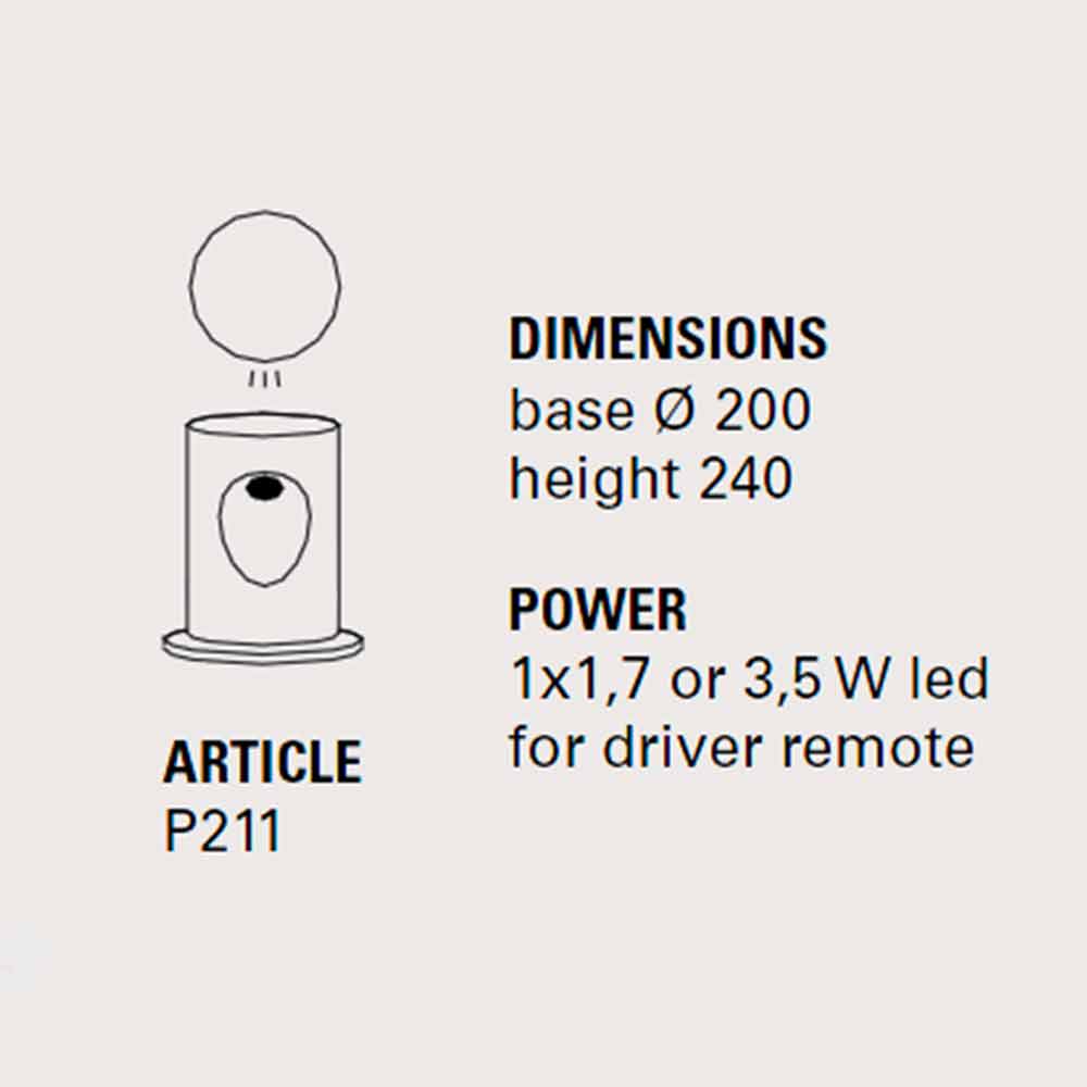 Dimensiones : base Ø200 x H 240 mm