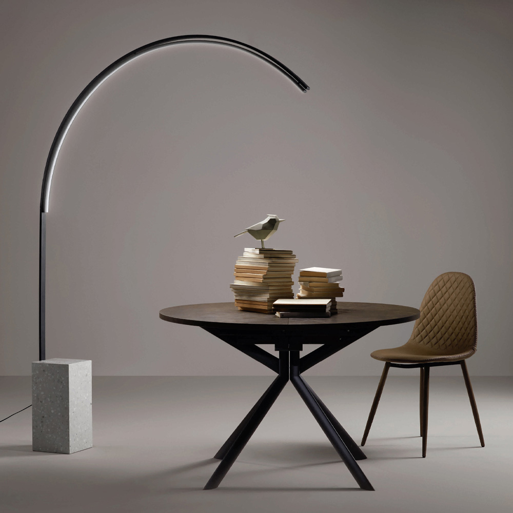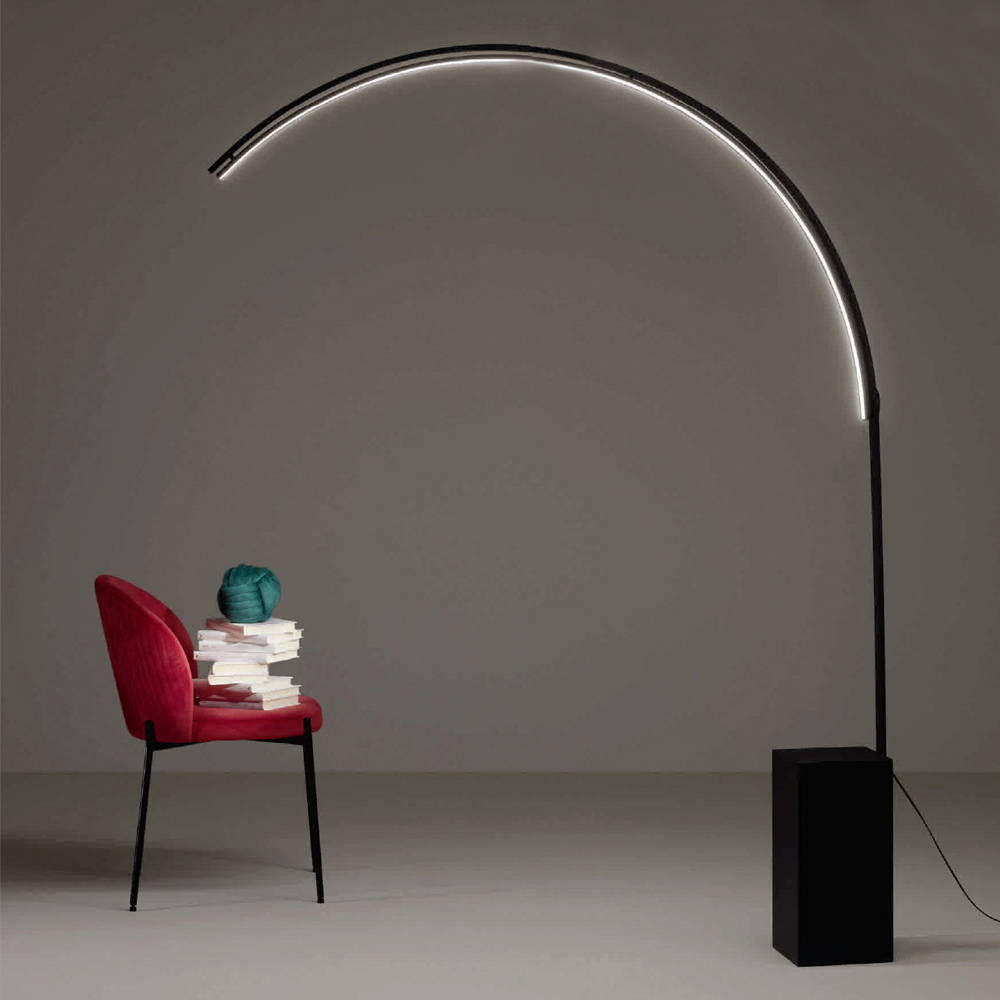 Lámpara de pieproducida íntegramente en Italia en metal pintado ,luz con LED regulabley con la base en el mismo color o en mármol ceppo di grè. Este producto tiene como objetivo realzar la tradición a través de un enfoque contemporáneo donde el estilo, la clase y la innovación se fusionan para crear nuevas fórmulas de diseño para amueblar e iluminar cualquier ambiente con gusto y carácter. Los puntos fuertes son la peculiaridad de las formas , la calidad de los materiales y la singularidad de la fuente de luz .