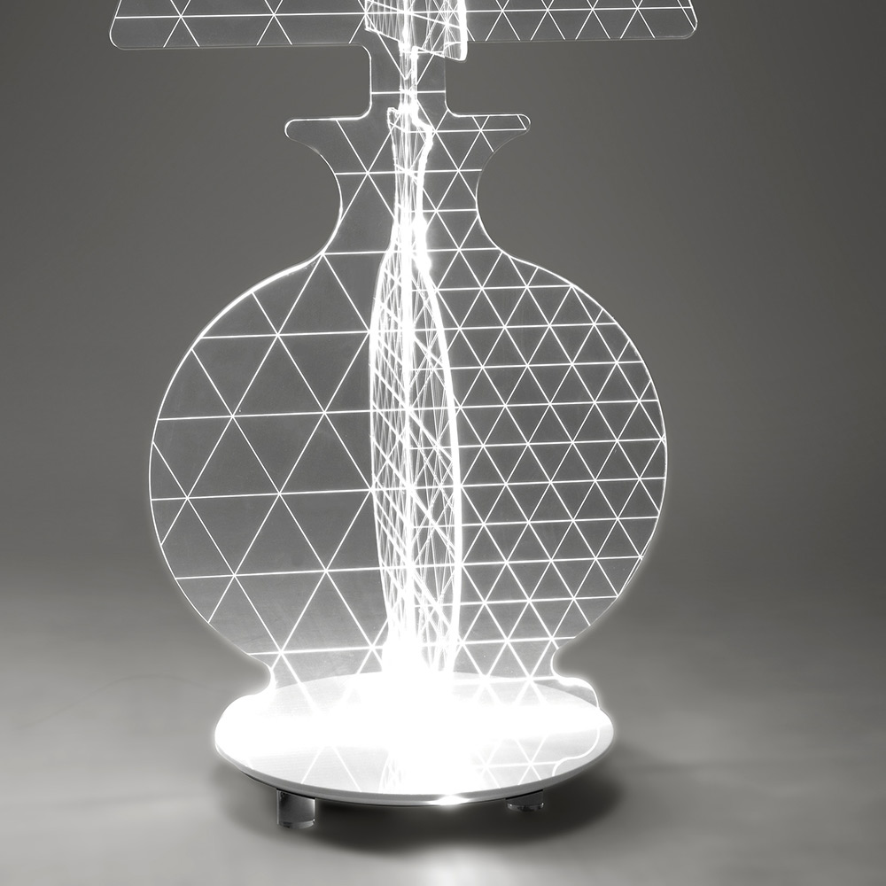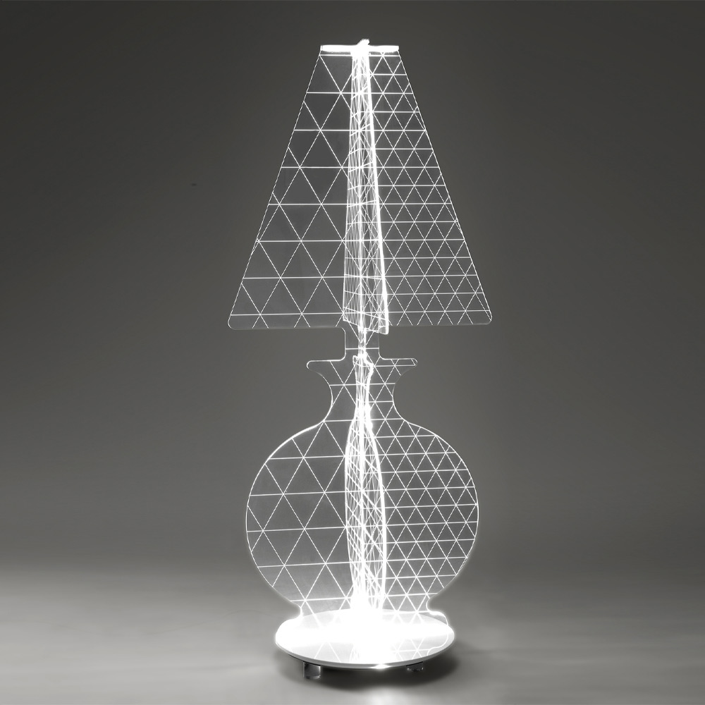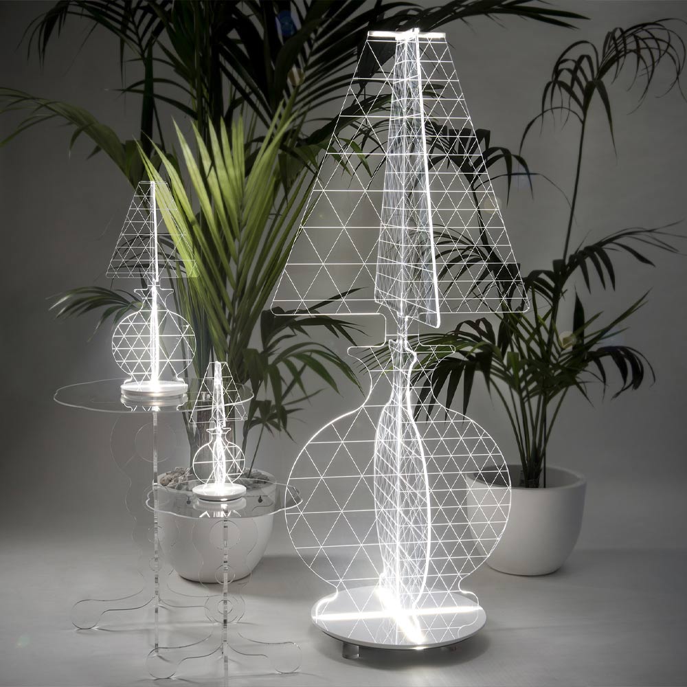 Lámpara de mesa de plexiglás marcada con láser, 3 tamaños fabricada en Italia.