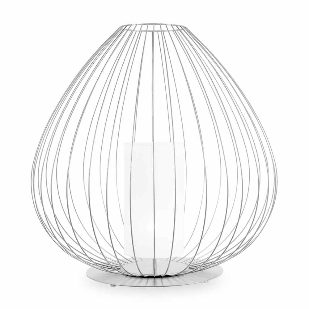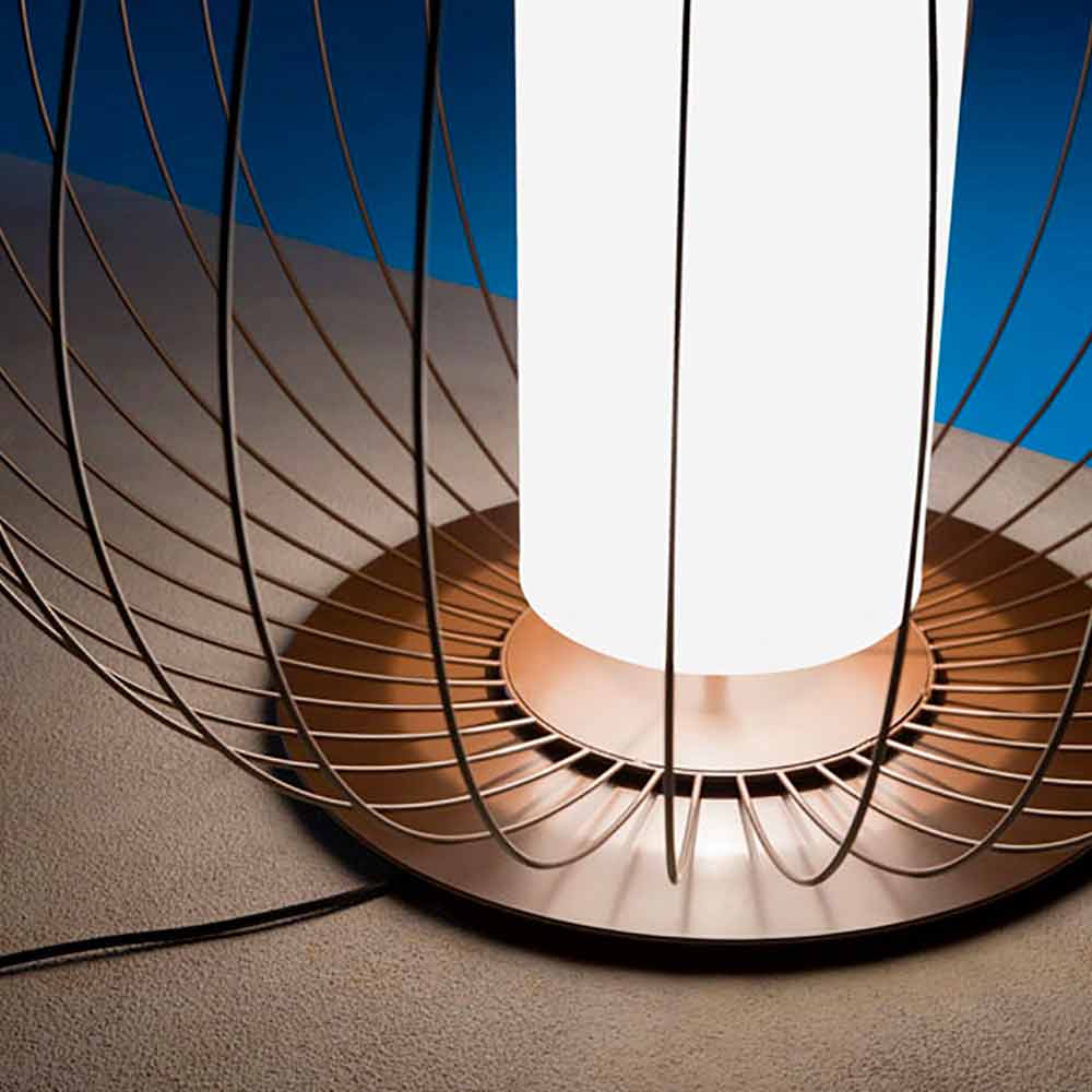 Esta original y singular lámpara de sobremesa tiene un diseño inspirado en los faroles que vuelan en el cielo, re-proponiendo su estructura y espíritu gracias a sus finas líneas que desafían el aire hecho de alambre de metal, para un complemento mínimo con un carácter fuerte.