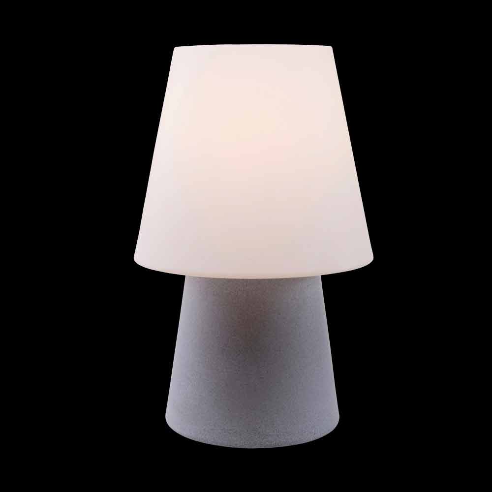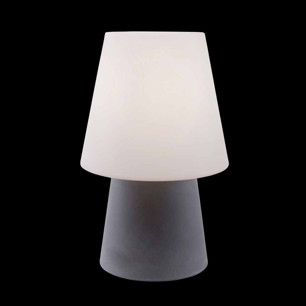 Lámpara de sobremesa o de pie con opción de fijación en polietileno en diferentes colores con un diseño moderno para interior o exterior.