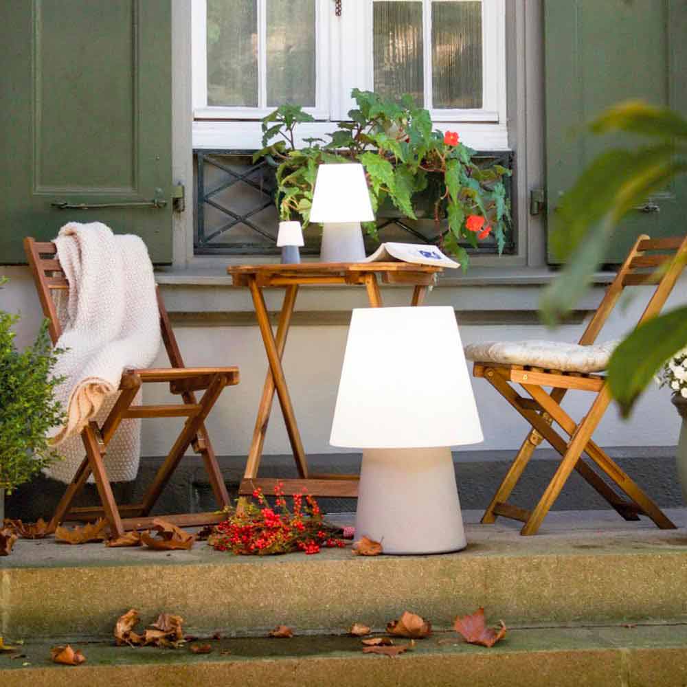 Esta lámpara de sobremesa o pie se caracteriza por un diseño contemporáneo y atemporal capaz de crear un ambiente perfecto y elegante tanto en espacios interiores como exteriores .