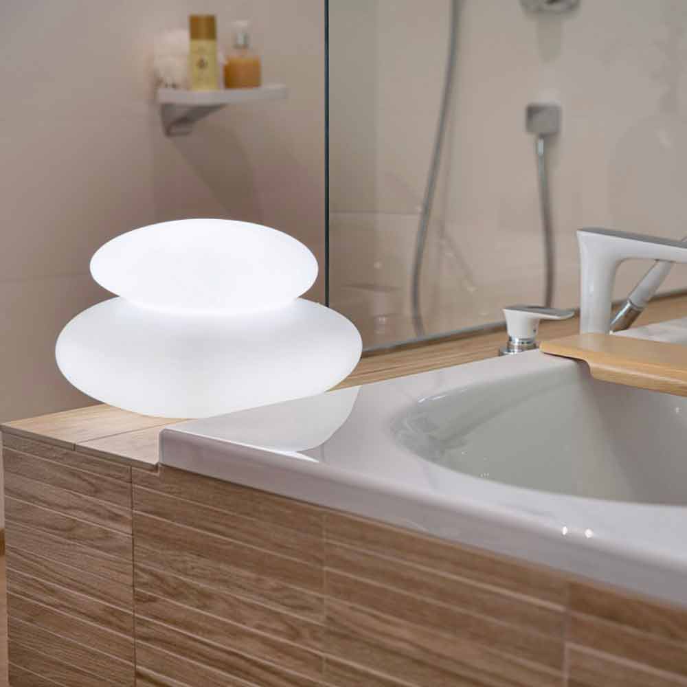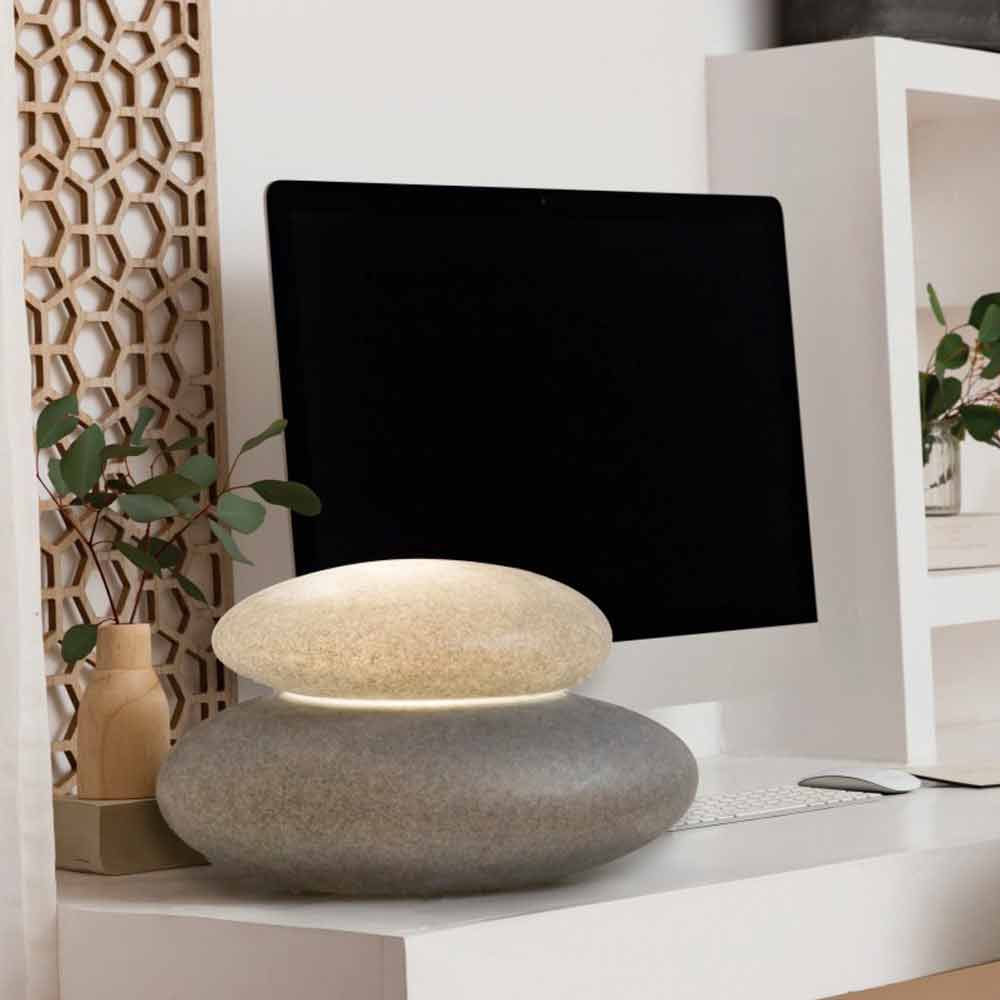 Lámpara de pie de diseño moderno en forma de roca, con opción de fijación y en diferentes colores para interior o exterior.