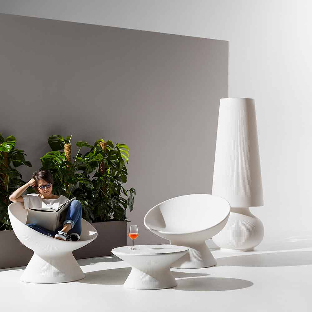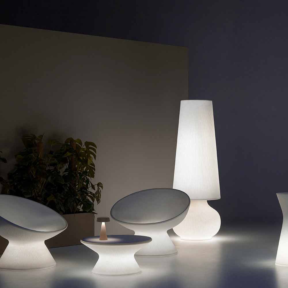 Lámpara de pie para decorar espacios exteriores made in Italy en polietileno blanco. Caracterizada por un diseño elegante y moderno, esta lámpara con presencia escultórica es una solución de decoración perfecta para ambientes exteriores como jardines y terrazas o espacios contract donde es necesario enriquecer la estética con un toque innovador y original.