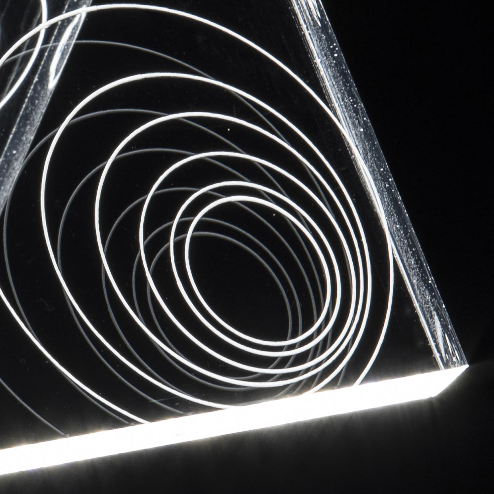 efecto de juego hecho posible gracias a las características físico-técnicas del cristal acrílico.