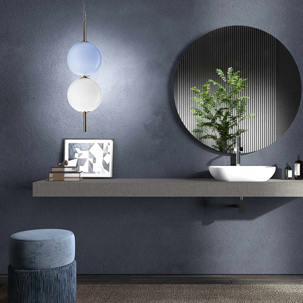 - esferas de dos tonos (vidrio con camisa blanca, vidrio con camisa azul);