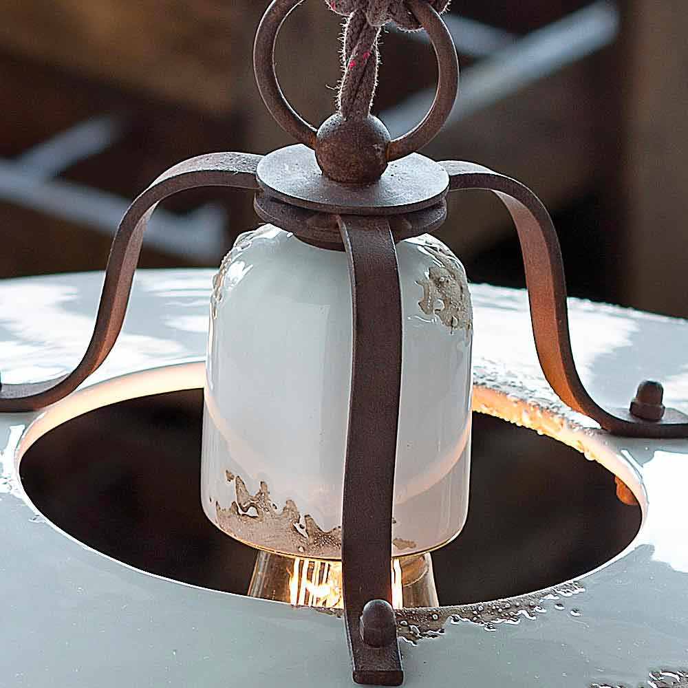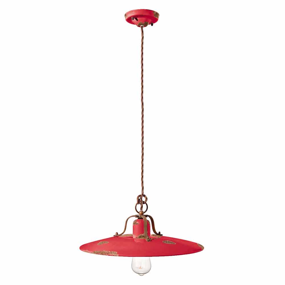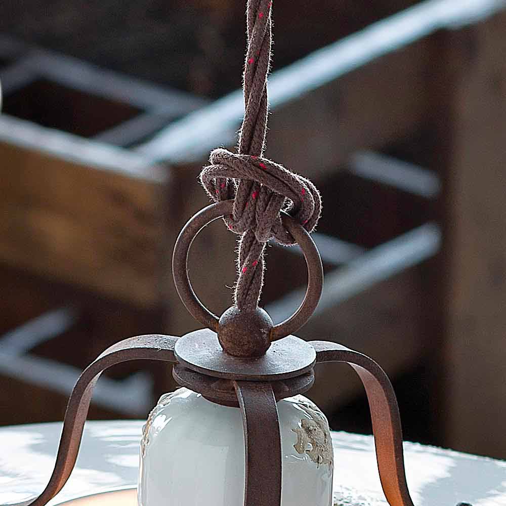 Lámpara de suspensión en cerámica y metal country Emily Ferroluce Emily es una suspensión fantástica con un estilo country - vintage. Suspensión hecha a mano por expertos artesanos en Italia. Emily es una lámpara original y funcional, realizada en cerámica y metal y formada por elegantes líneas sinuosas. El efecto descuidado de las superficies es un detalle deseado obtenido a través de pasos técnicos precisos. Como si el tiempo hubiera marcado su camino. Un diseño que se opone al lujo pero que convive armónicamente con él. Una suspensión única en su género, que crea un amplio haz de luz directa que ilumina armónicamente todo lo que encuentra. Ideal para ambientes con estilo urbano y sabor vintage. ¡Pequeños detalles para un gran efecto con sabor antiguo! Lámpara disponible en diferentes acabados. ¡Consulta la carta de colores e introduce el código del acabado que deseas en la casilla correspondiente!