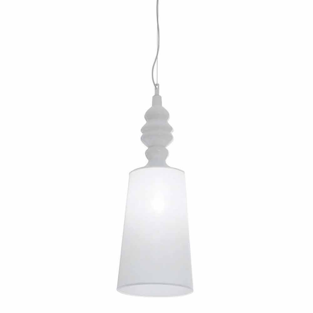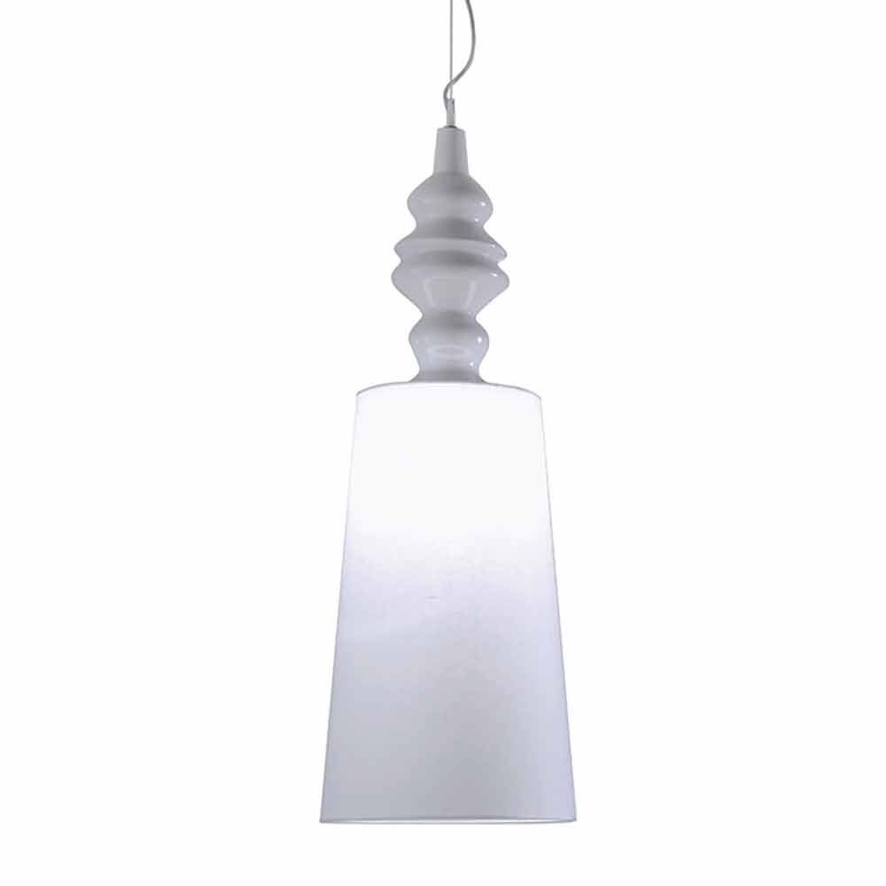La lámpara está hecha de blanco brillante cerámica como un material que representa el origen, la maleabilidad, la creación y que conduce directamente a los orígenes de nuestra cultura. Pantalla en lino blanco.