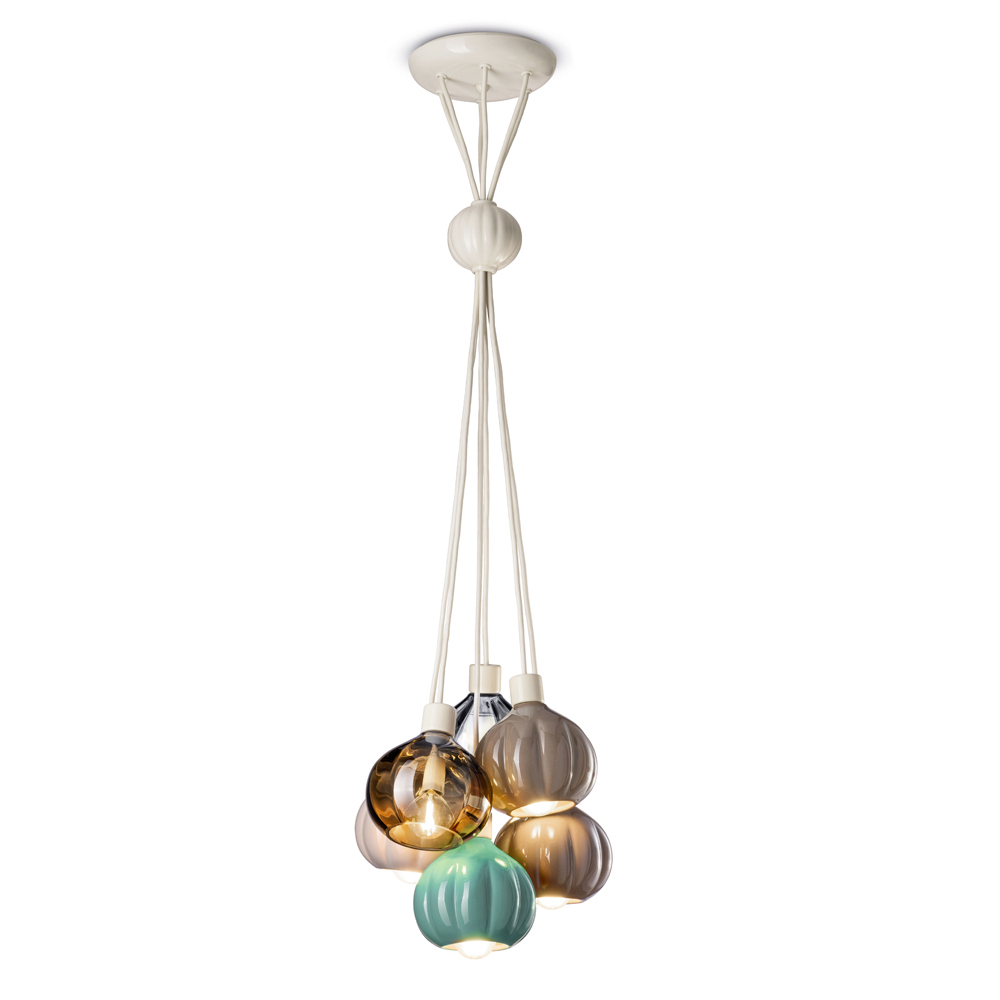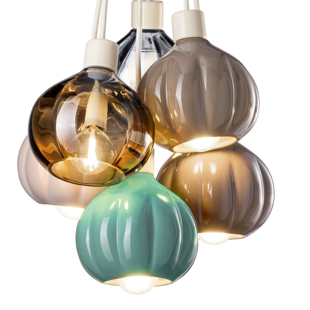 El juego de alturas y la variedad de colores crean un conjunto armonioso que se convierte en el punto de apoyo visual de cada estancia , una escultura suspendida que ilumina y decora al mismo tiempo. Esta lámpara es una opción ideal para aquellos clientes que buscan un mueble único que cuente una historia, un objeto que no sea sólo un elemento de iluminación sino un elemento de diseño distintivo.