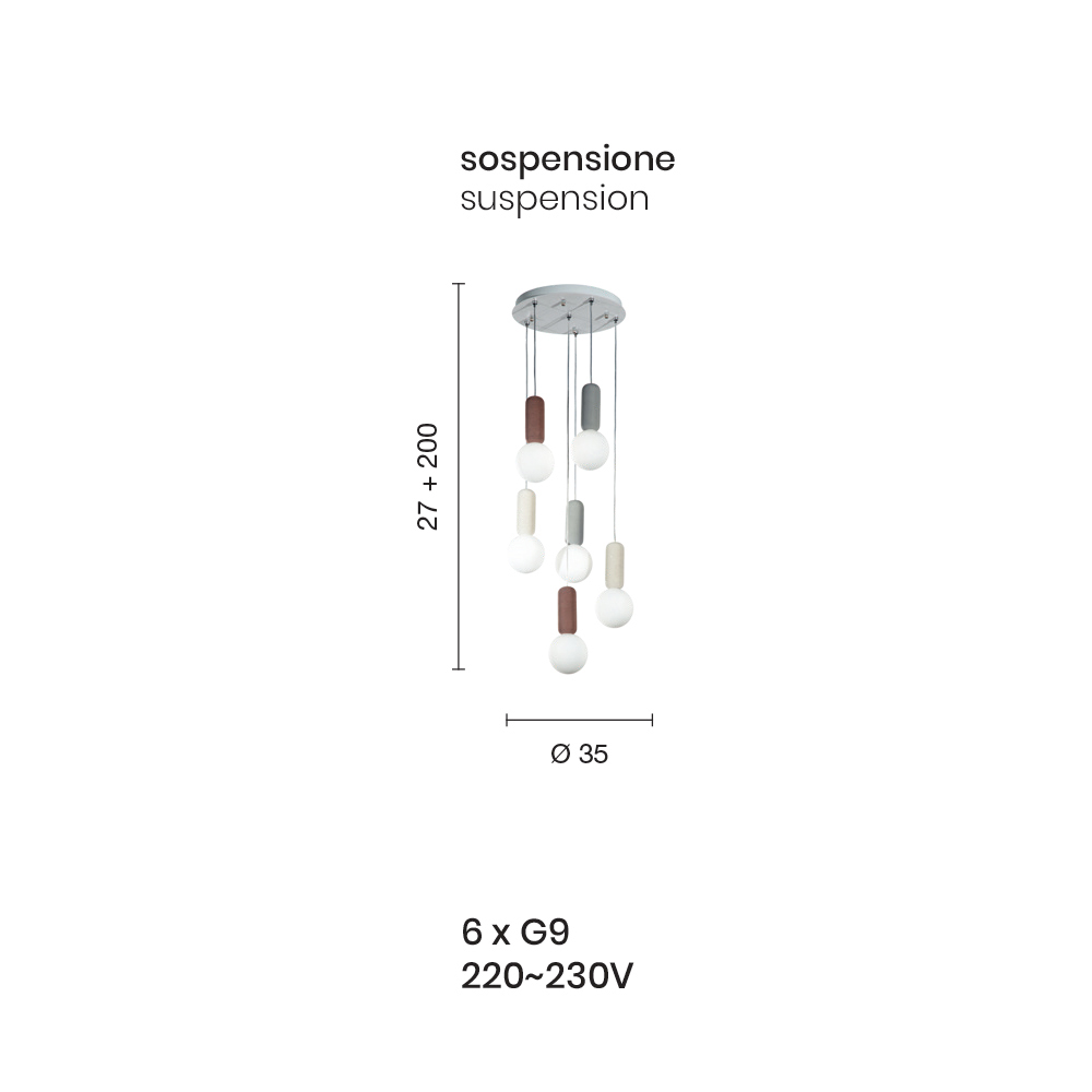 6 luces - diámetro 35 x H 227 cm (6x G9 220-230V);