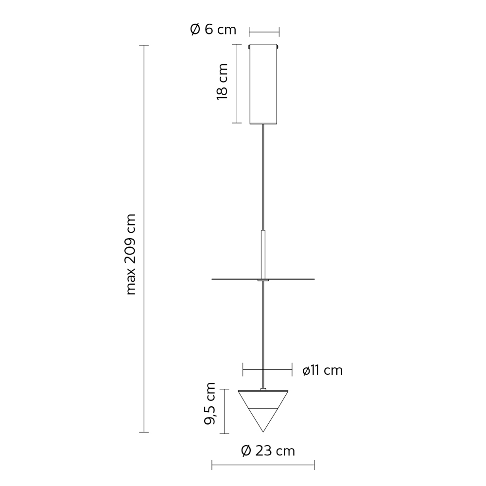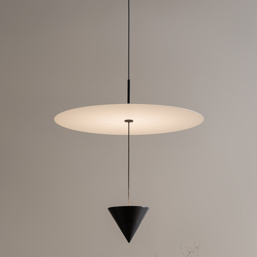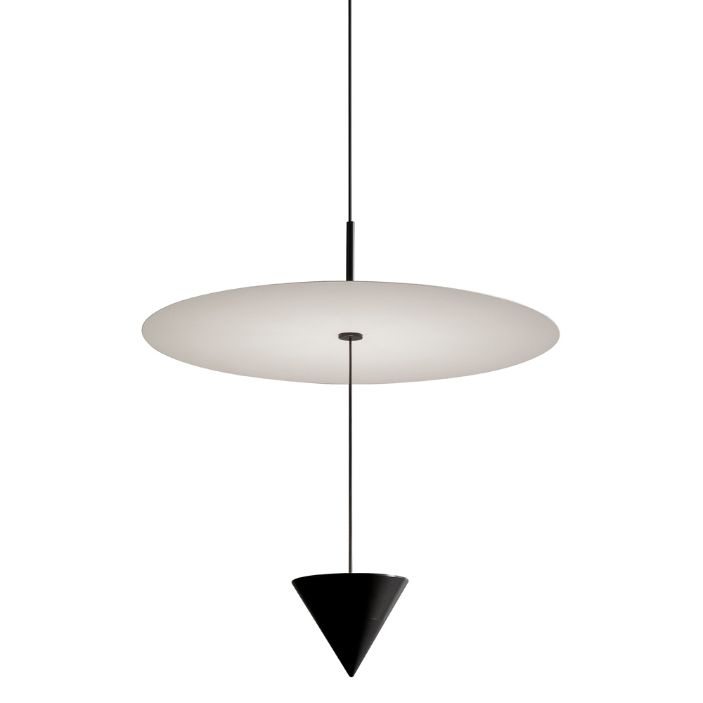 Consta de un elemento decorativo circular en aluminio blanco y un cono negro .