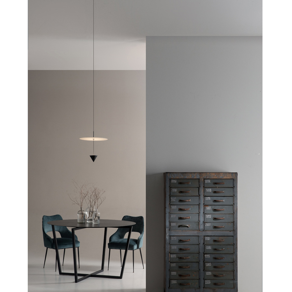 La lámpara está realizada con una estructura de aluminio opaco para un diseño íntegramente italiano que, a través de la experimentación poco convencional y la búsqueda continua entre tradición y modernidad , es capaz de asombrar, atrever y emocionar, permitiéndote expresar tus emociones a través de un uso decorativo original y personal. de luz.