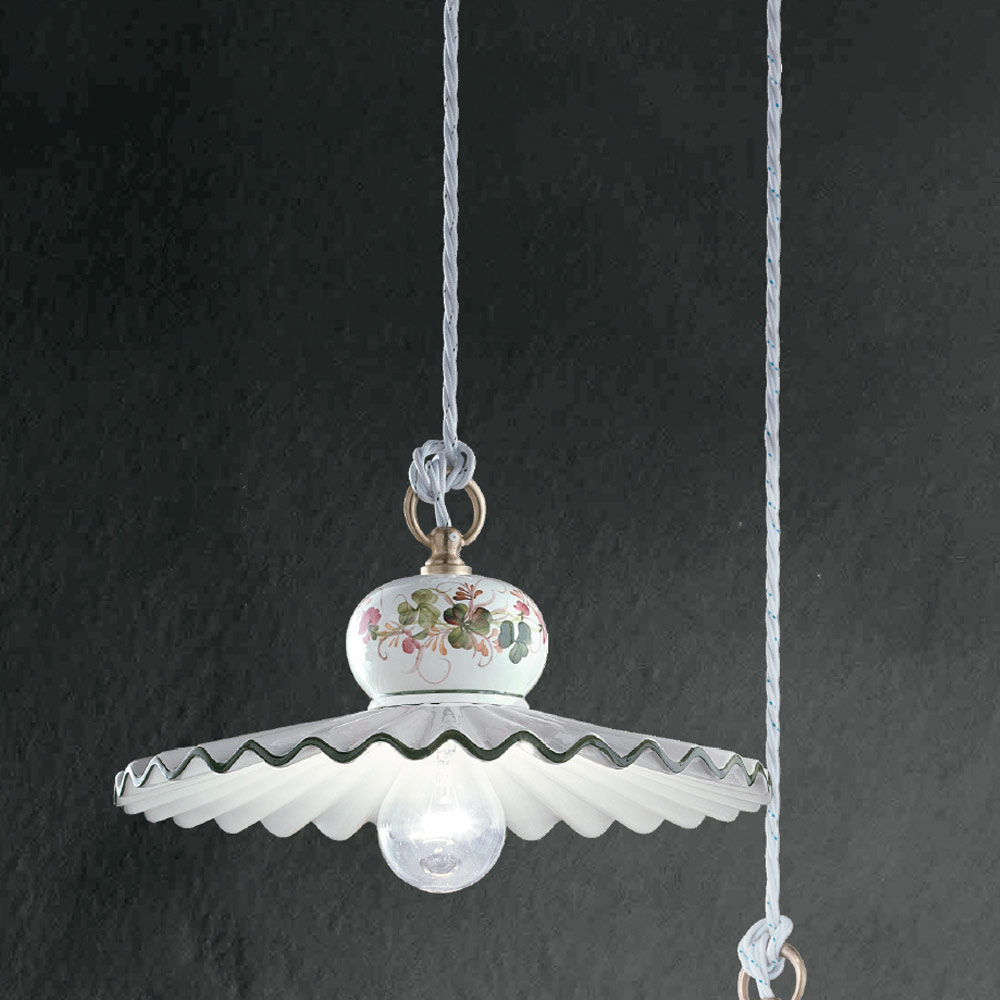 Esta lámpara colgante está totalmente fabricada a mano en metal y cerámica con decoración pintada a mano ,para resaltar la artesanía y las habilidades manuales de los artesanos. El diseño se caracteriza por el estilo campestre y los detalles románticos típicos de la campiña italiana que aportan frescura a las diferentes estancias.