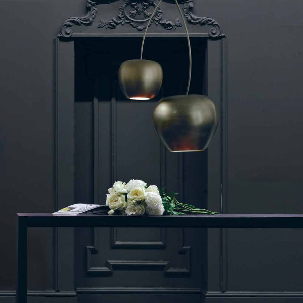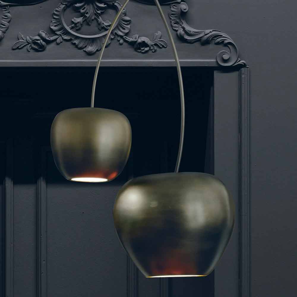 Lámpara de suspensión fabricada en Italia con tulipa en forma de cereza en cerámica con acabado negro dorado y soporte de metal . Una idea de iluminación caracterizada por un estilo excéntrico y original capaz de revolucionar el mobiliario gracias a un toque de creatividad . Su particular forma dota al producto de una estética única y vanguardista pensada para quienes aman enriquecer sus espacios con elementos decorativos tan funcionales como de fuerte impacto visual para un resultado cautivador y exclusivo .