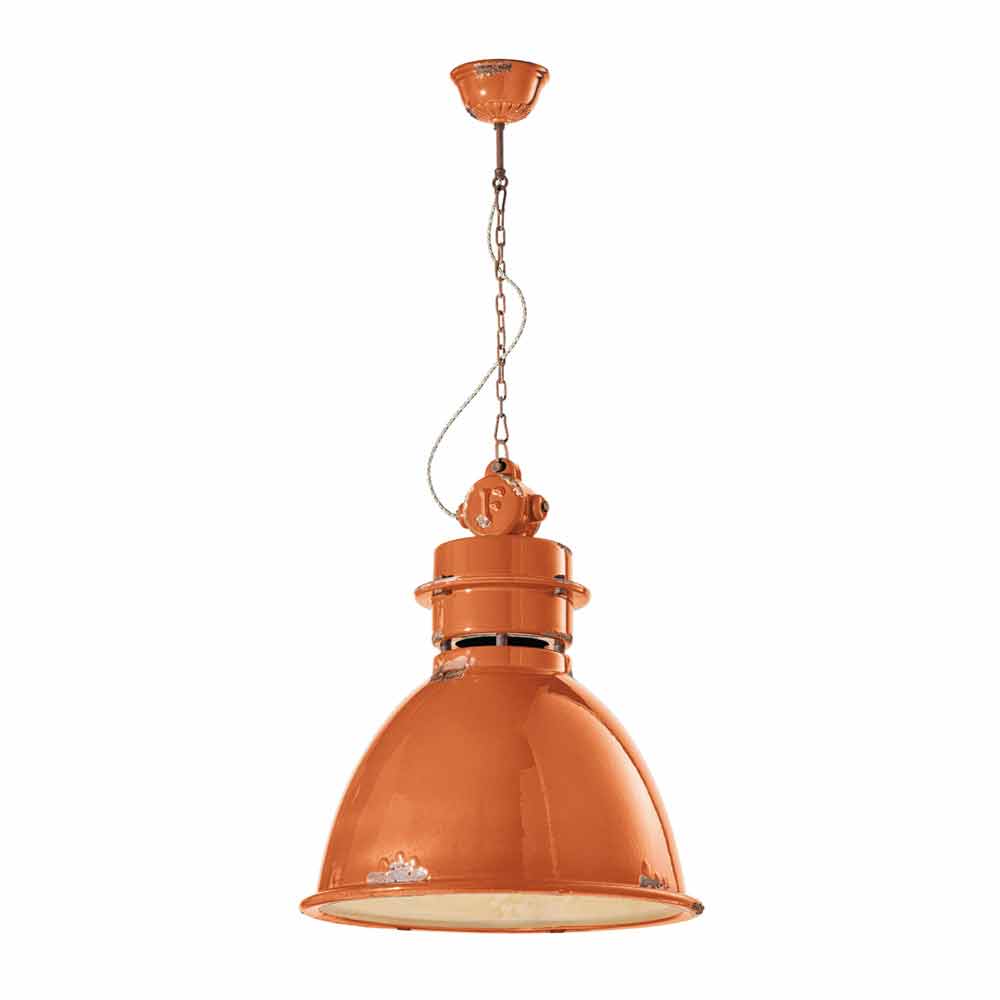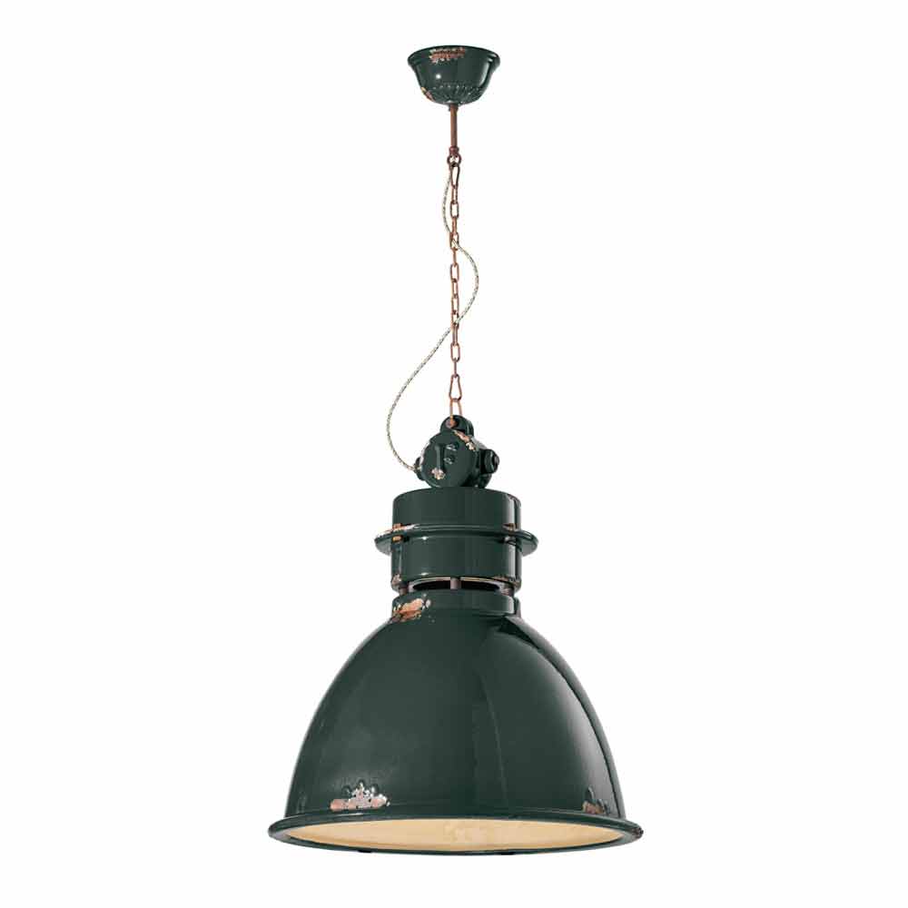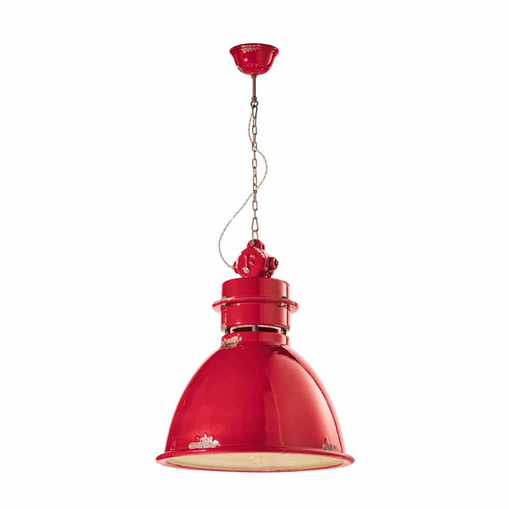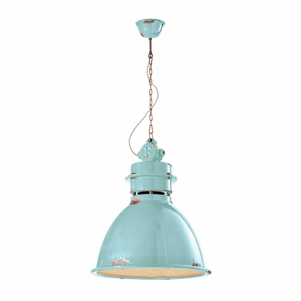 Lámpara colgante industrial de diseño artesanal Katie Katie es una suspensión fantástica, con forma de campana y estilo vintage - industrial, hecha a mano por expertos artesanos en Italia. Esta preciosa lámpara consta de una estructura con detalles metálicos y un difusor fabricado en cerámica brillo, disponible en diferentes colores. La peculiaridad de esta lámpara radica en la elaboración artesanal del difusor cerámico. La cerámica, de hecho, está decorada como si el tiempo hubiera marcado su camino. La reproducción de la erosión del tiempo combinada con las superficies brillantes le dan ese valor extra a esta suspensión. Este efecto desgastado le da a Katie un sofisticado estilo industrial vintage. Colores vivos, superficies brillantes y refinados signos de la edad para un perfil actual disfrazado de estilo pasado. Ideal para decorar una casa de campo de estilo inglés. Esta suspensión creada para ambientes con un ambiente envolvente es capaz de satisfacer las solicitudes más exigentes gracias a un diseño único y original. Un diseño que se opone al lujo pero que convive armónicamente con él. Diseño que preserva la esencialidad del uso y tranquiliza con un delicado equilibrio entre formas y tonos. Katie crea luz pura, sin pantallas. Son estas formas sencillas y delicadas las que llaman la atención, y que hacen que Katie sea capaz de adaptarse a cualquier decoración, desde la más sencilla y minimalista, hasta la más clásica, creando un delicado contraste. ¡Dale un toque de diseño también a tu hogar! ¡Pequeños detalles para un gran efecto con sabor antiguo! Lámpara disponible en diferentes acabados. ¡Consulta la carta de colores e introduce el código del acabado que deseas en la casilla correspondiente!
