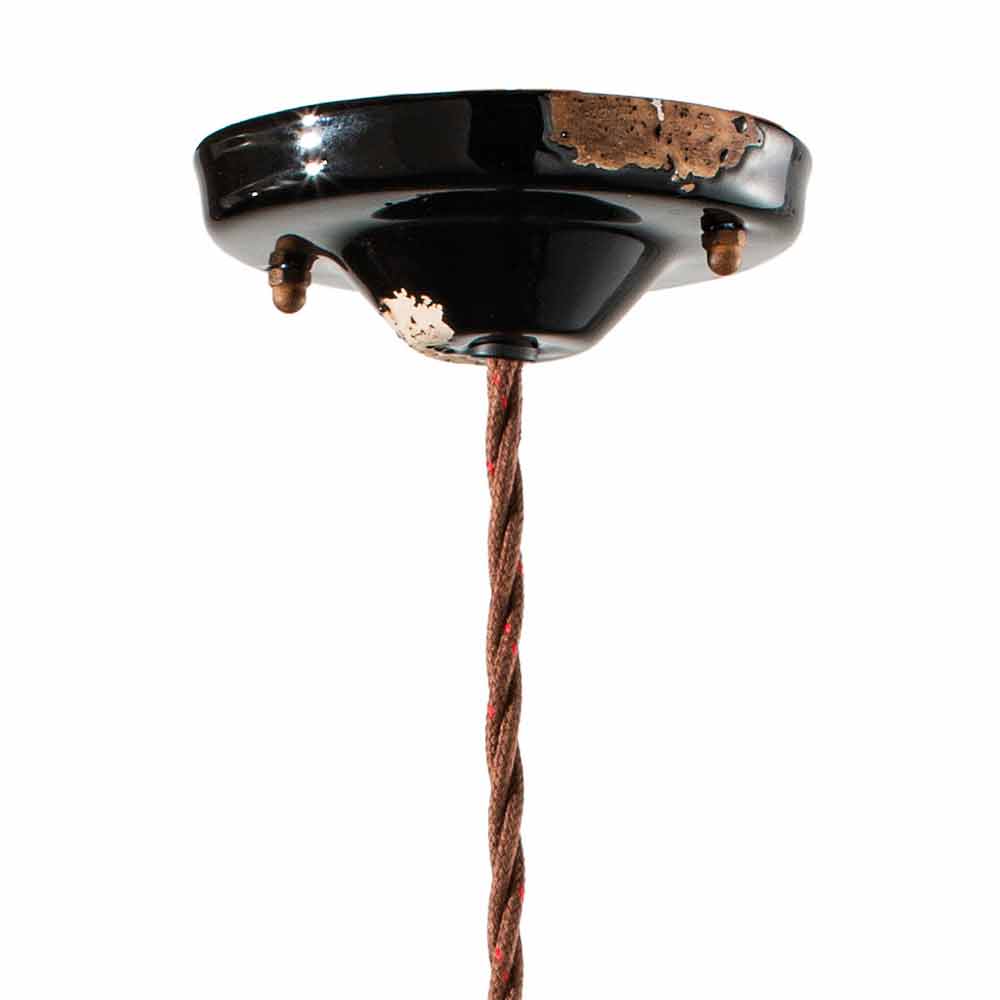 Lámpara de suspensión en hierro corten y cerámica Lois Ferroluce Lois es una fantástica lámpara de suspensión en forma de campana, con un diseño único y original, hecha a mano por expertos artesanos en Italia. Esta preciosa lámpara consta de un gran difusor fabricado en metal envejecido, concretamente en hierro en el acabado corten - óxido. El hierro, a través de un proceso artesanal especial, se trata de tal manera que se oxida naturalmente. Otra peculiaridad de esta suspensión está contenida en los detalles realizados en cerámica: el dosel, la esfera decorativa y el plato, todos ellos realizados en cerámica, disponibles en diferentes variaciones cromáticas. La característica de singularidad está contenida en el procesamiento y acabado de las piezas cerámicas, decoradas como si el tiempo hubiera marcado su camino. La reproducción de la erosión del tiempo combinada con las superficies brillantes le dan ese valor extra a esta suspensión. El efecto descuidado de las superficies es un detalle deliberado. Un diseño que se opone al lujo pero que convive armónicamente con él. Es precisamente este material el que le da a Lois este papel de rememorar el pasado. Lois se inspira en el estilo rústico americano. Es una lámpara de colores tenues y sabor vivido, ¡es sencilla y atemporal! Lois crea luz pura, sin pantallas. Son estas formas simples y delicadas las que llaman la atención, y las que hacen que Lois sea capaz de adaptarse a cualquier decoración, desde la más sencilla y minimalista hasta la más clásica, creando un delicado contraste. ¡Dale un toque de diseño también a tu hogar! Lámpara disponible con piezas de cerámica en diferentes acabados. ¡Consulta la carta de colores e introduce el código del acabado que deseas en la casilla correspondiente!
