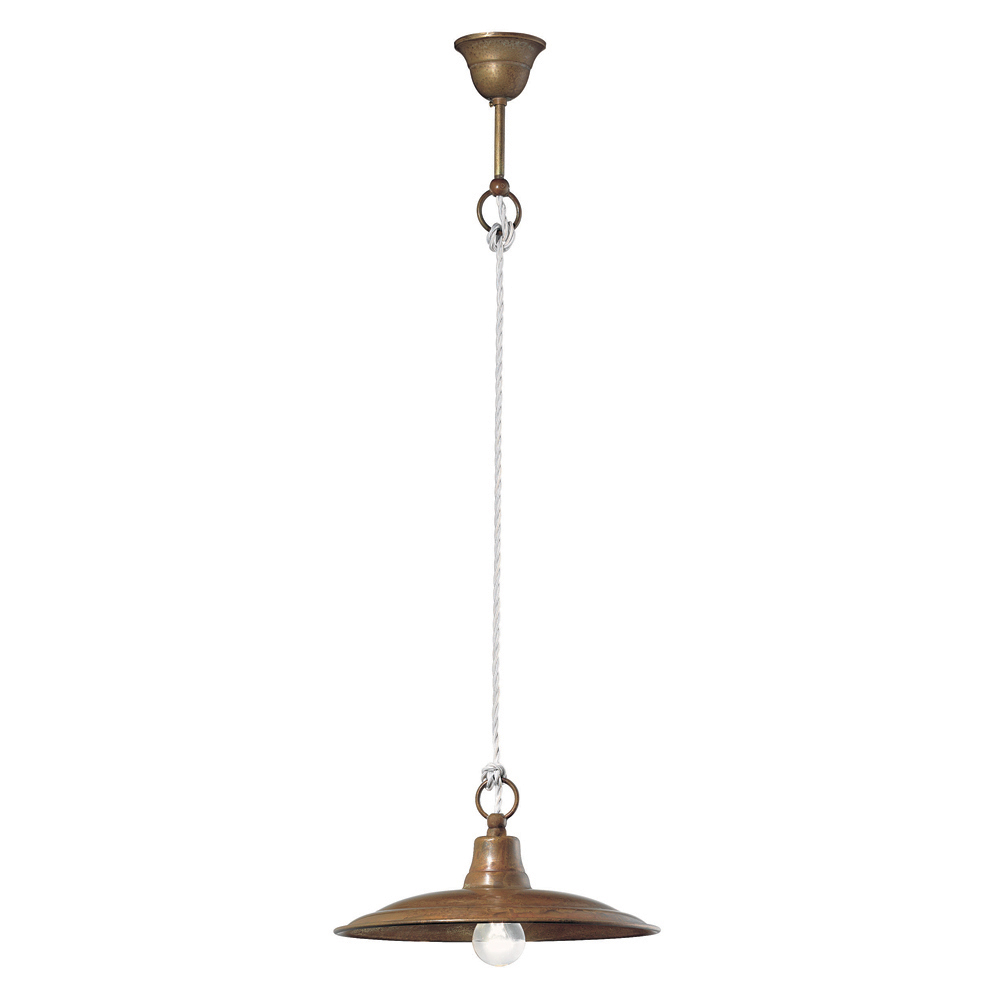 Lámpara de suspensión realizada con estructura de latón envejecido, cabezal de cobre envejecido y cable de longitud regulable.íntegramente Made in Italy. En las lámparas de la colección Chiocciola, fabricadas en hierro, latón o cobre antiguo, se hace hincapié en la funcionalidad. Inspiradas en el arte pobre, tienen formas limpias y libres de cualquier artificialidad. La colección se compone de lámparas colgantes, apliques, plafones y lámparas de jardín.