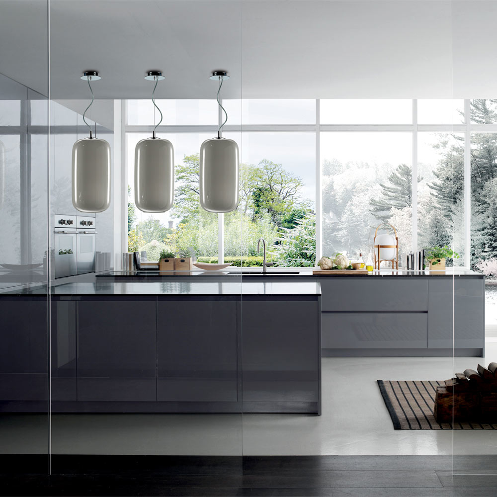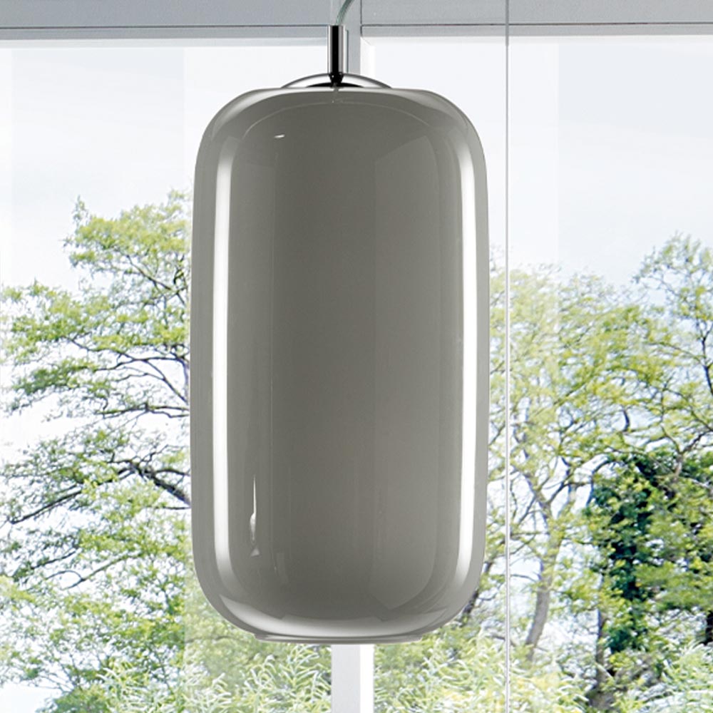 Lámpara de suspensión totalmente hecha a mano en vidrio soplado en los hornos de la laguna de Venecia, en Italia, según las antiguas tradiciones del procesamiento del vidrio de Murano.