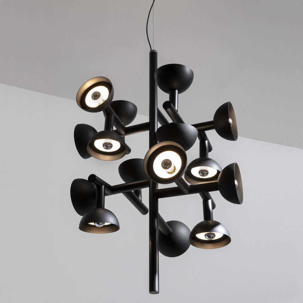 Lámpara de suspensión en diseño de aluminio blanco o negro con 16 luces made in Italy.