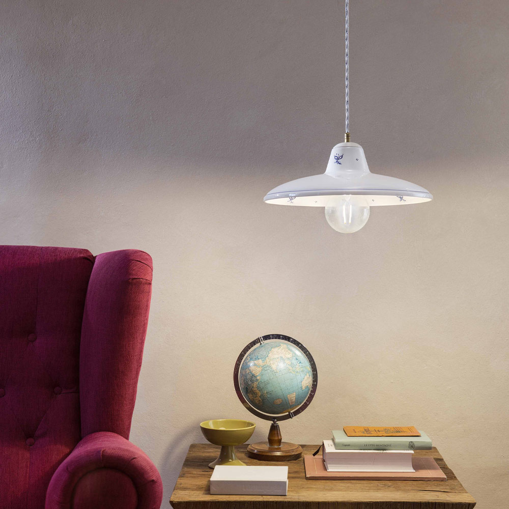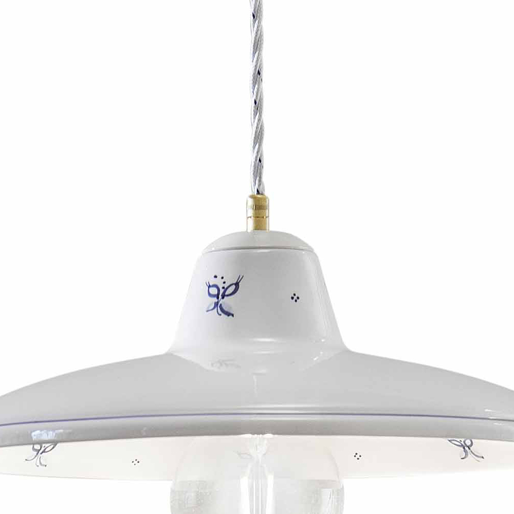Lámpara colgante de hierro y cerámica decorada a mano, fabricada en Italia por Ferroluce.