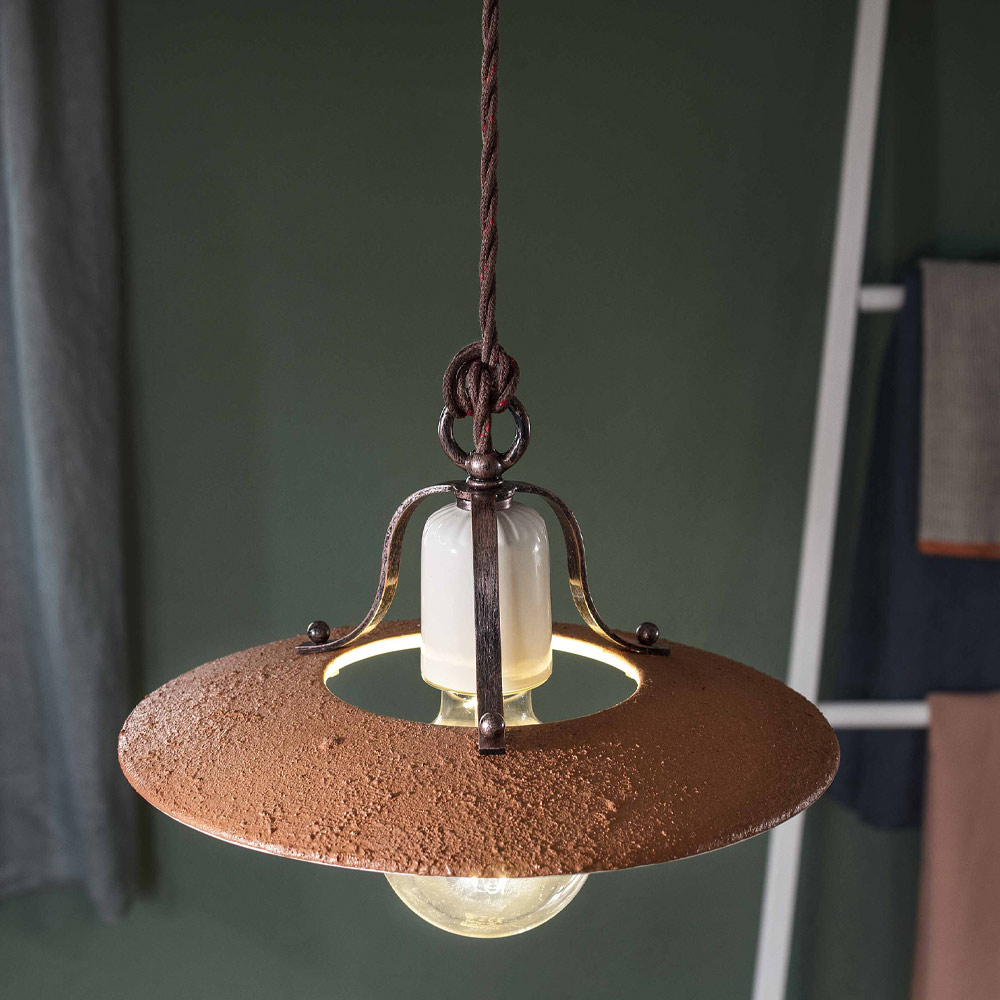 Lámpara de suspensión en hierro y cerámica en bruto hecha a mano, 3 tamaños fabricada en Italia por Ferroluce.