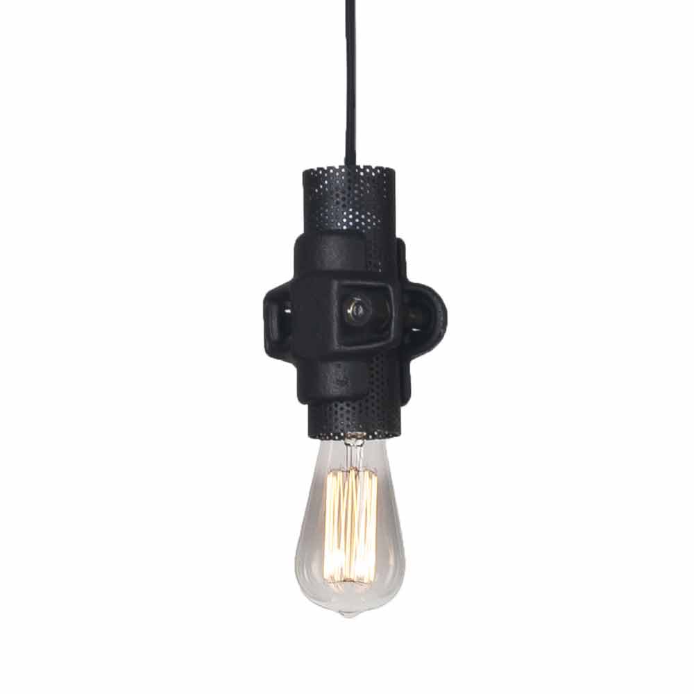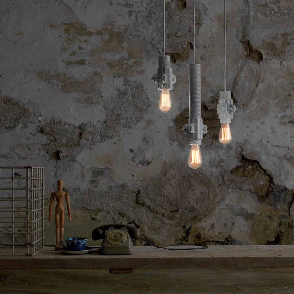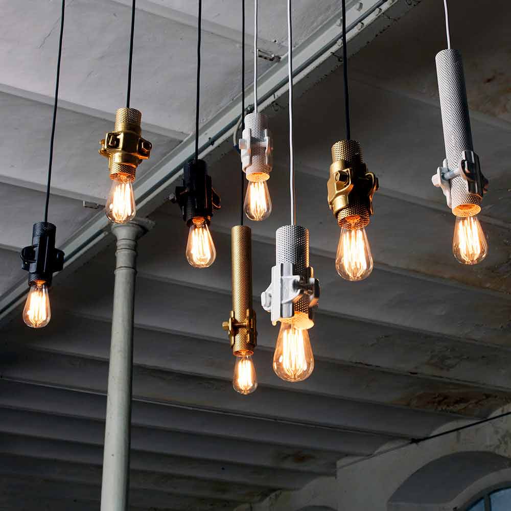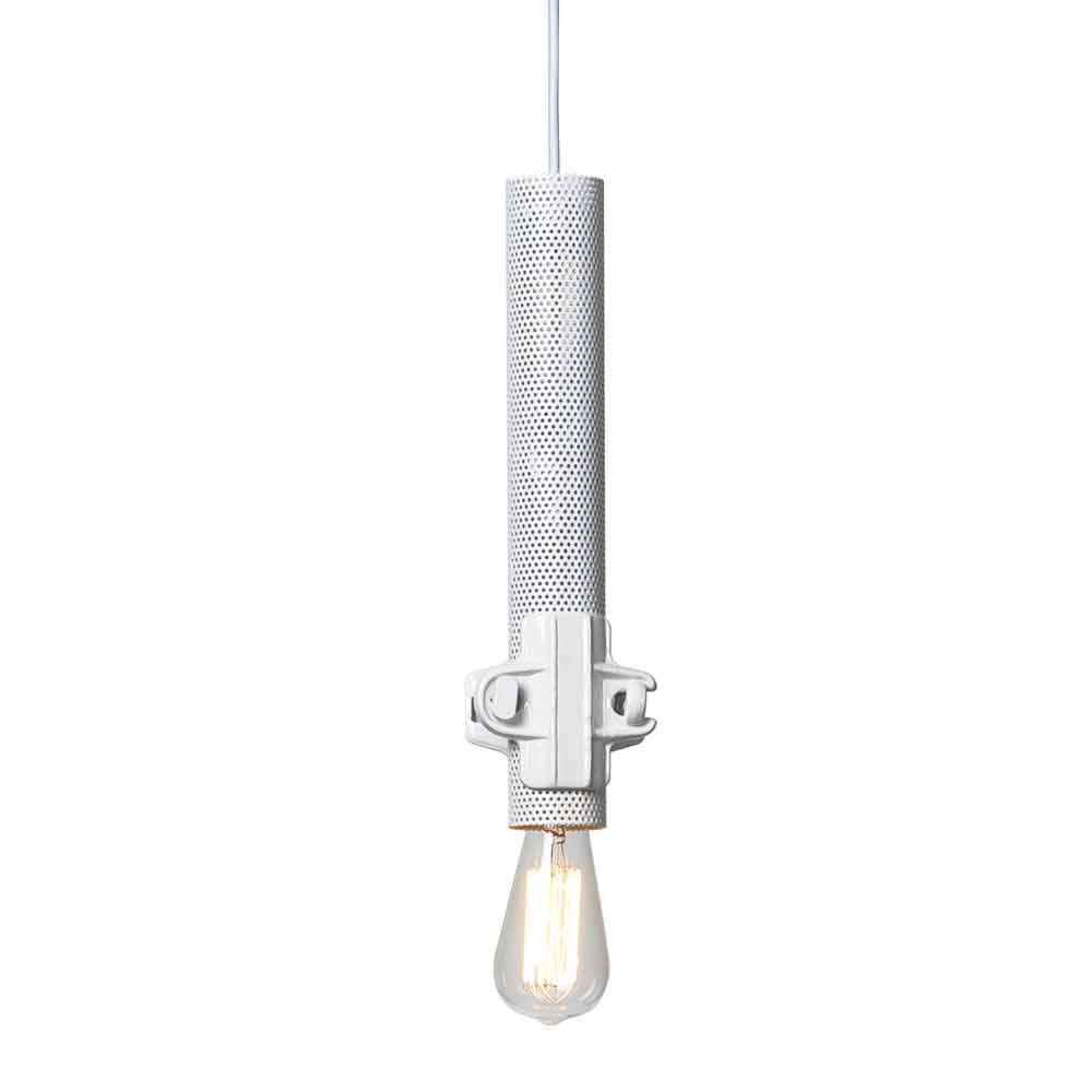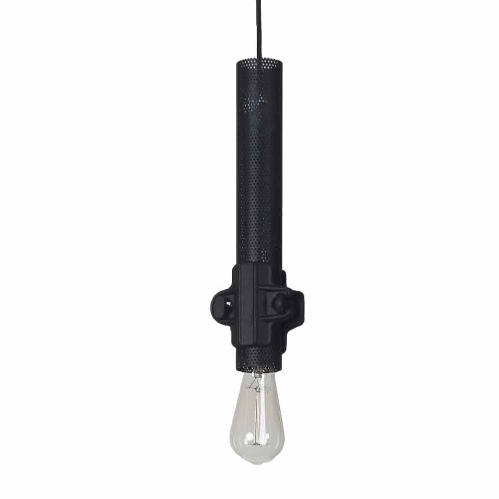 Esta original y singular lámpara de suspensión está compuesta por un tubo y una articulación, dos elementos que pueden transformarse en vectores de luz para un diseño entre lo técnico y lo sofisticado, de estilo industrial.
