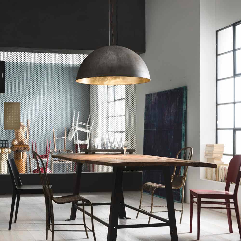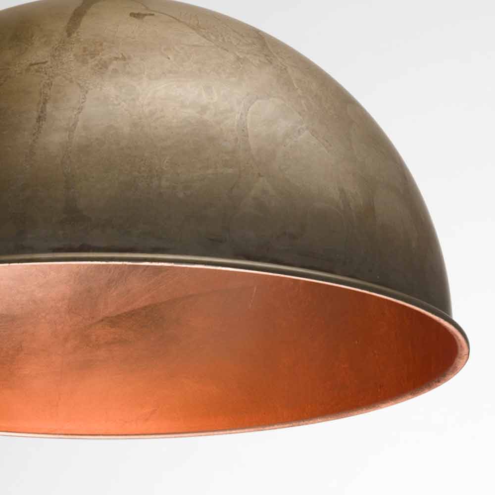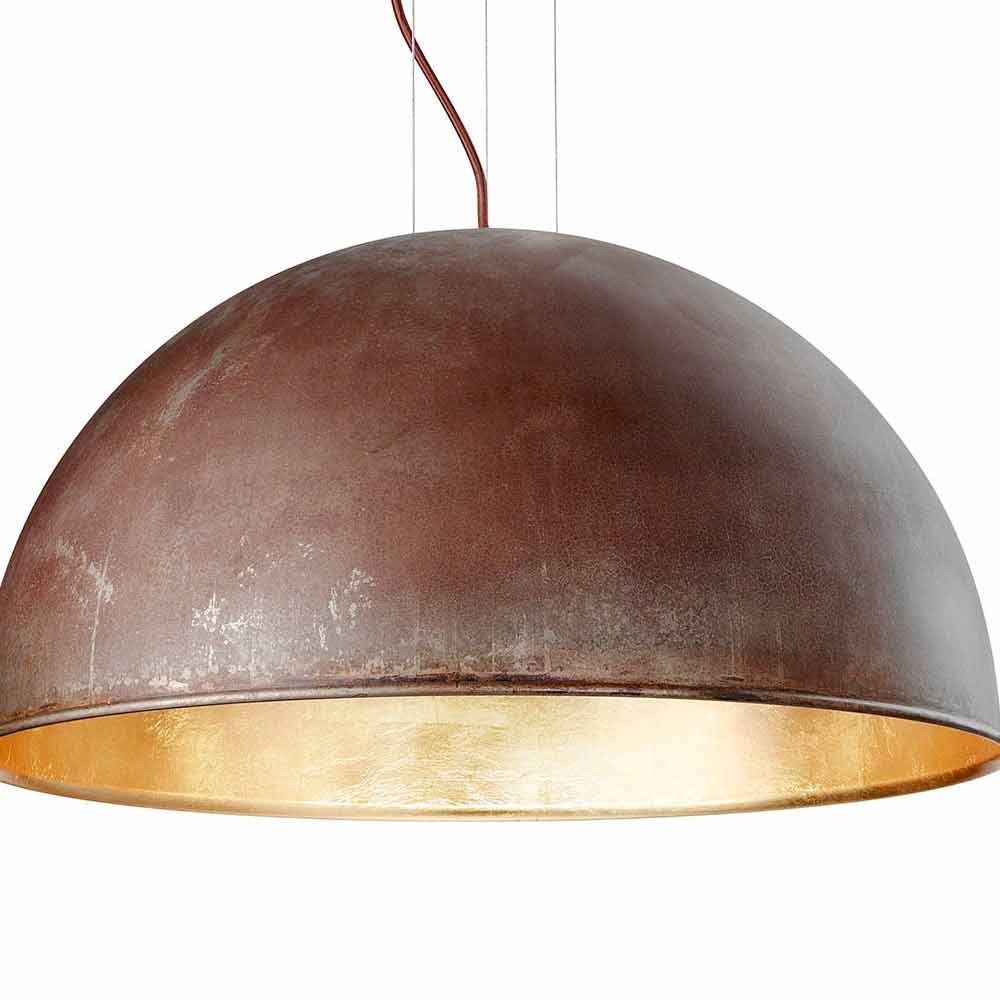 El trazado gráfico conciso y la prefecta semi-esfera, caracterizan esta colección de lámparas, que se configura como un regalo a la revolución astronómica. El contraste entre la parte exterior de latón o hierro y la parte interna realizada con pan de oro, pan de plata o cobre, le confiere a este producto, un valor estético con un gran efecto visual. Disponible con la parte externa realizada en latón o hierro con diámetros 30,40,60 cm y con parte externa de hierro con diámetro 80 cm.