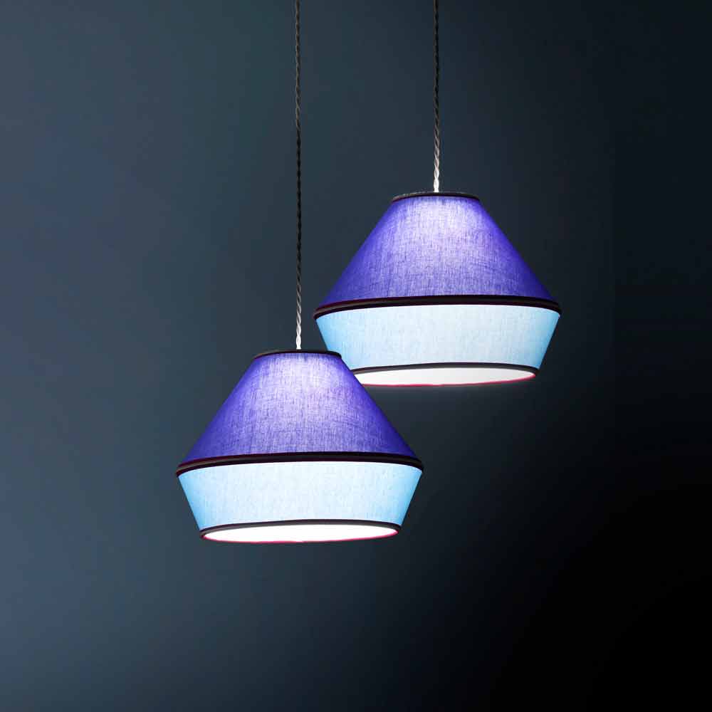 Hecho completamente en Italia, esta lámpara suspendida se compone de una pantalla de lámpara azul de algodón azul y la luz enriquecida con inserciones rojas y blancas que aumentan su valor estético, por lo que es único y con un diseño original. Precisamente esta combinación creativa es capaz de dar un toque de color y vivacidad al entorno, haciéndose notar gracias a su fuerte personalidad y al mismo tiempo logrando revolucionar el aspecto de la estancia de forma inconfundible.