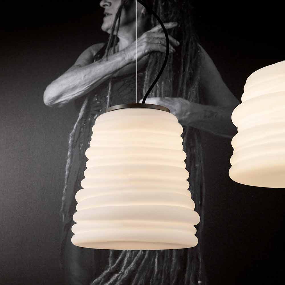 Esta original y singular lámpara de suspensión consigue enfatizar la autenticidad y los mil matices que caracterizan la personalidad de cada uno, a través de la representación de elementos luminosos con un diseño único e innovador como este inesperado y divertido complemento de la artesanía tradicional.