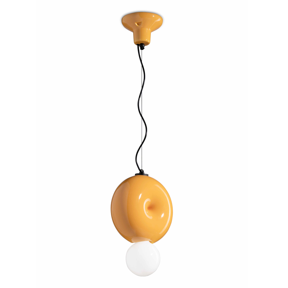 Esta lámpara colgante es un espléndido ejemplo de cómo el diseño puede realzar un espacio de vida o de trabajo. La base de cerámica está modelada con cuidado que refleja la maestría de los artesanos italianos . El diseño es contemporáneo pero con un toque de nostalgia, lo que lo hace ideal para quienes aman la combinación de modernidad y calidez retro.