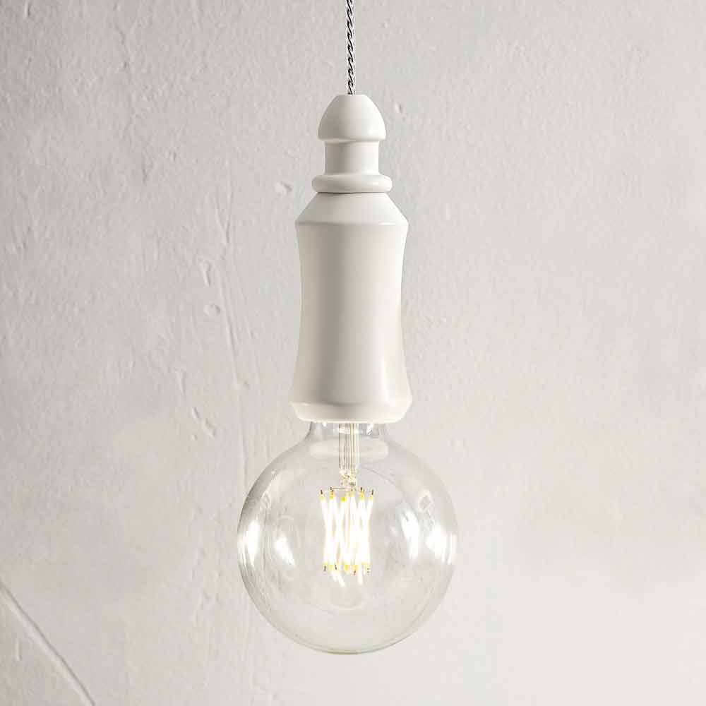 El cable eléctrico está fabricado en acero y está cubierto con una funda de silicona transparente. La lámpara se suministra sin bombilla, pero se adapta bien a las bombillas decorativas del mercado.
