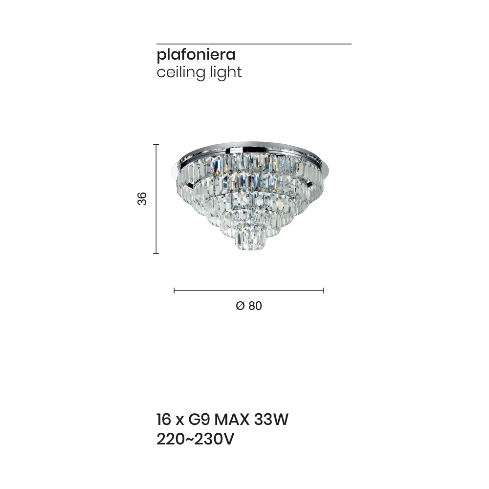 Este plafón de salón con 9, 12 o 16 luces es capaz de crear ambientes lujosos e importantes gracias a su diseño precioso y brillante.