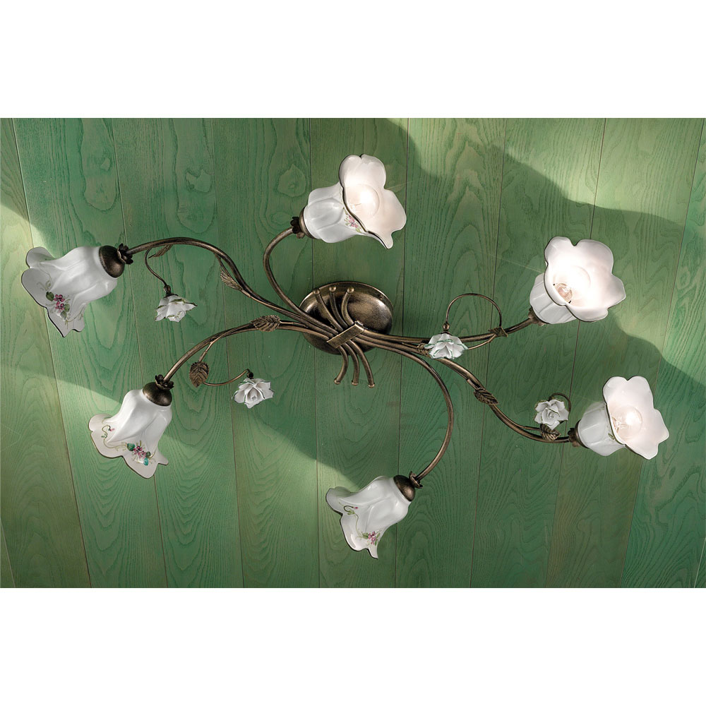 Lámpara de techo de 6 luces en cerámica artesanal con rosas decoradas - Pisa
