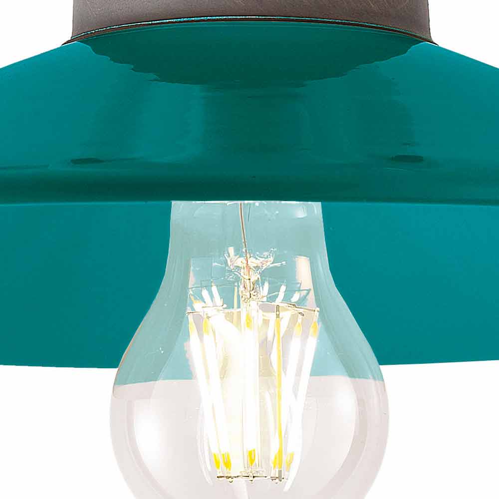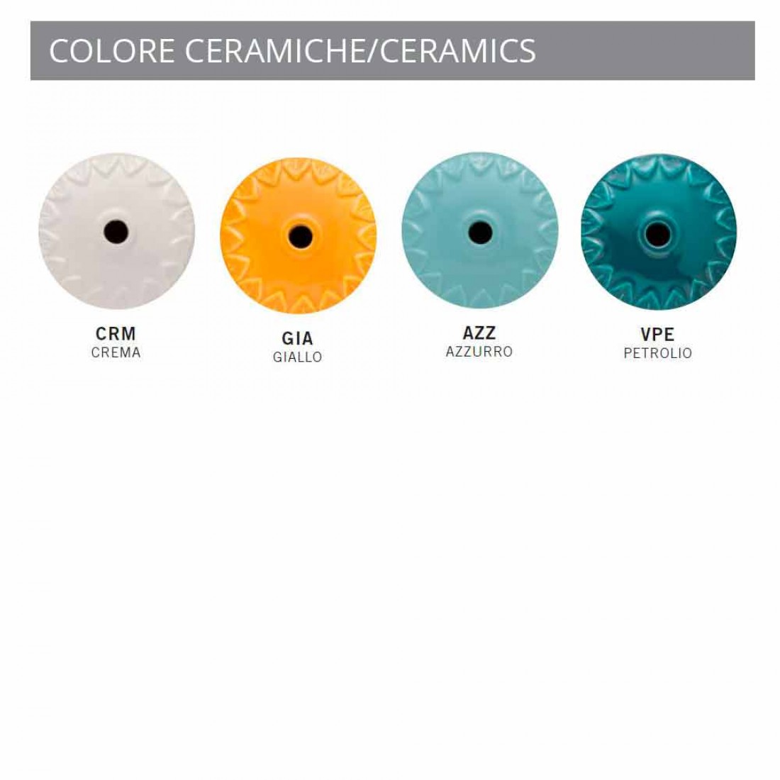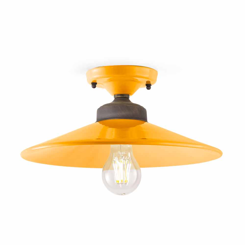 Esta preciosa lámpara de techo se compone de una estructura de latón envejecido con un difusor realizado en cerámica coloreada brillo, disponible en diferentes colores.