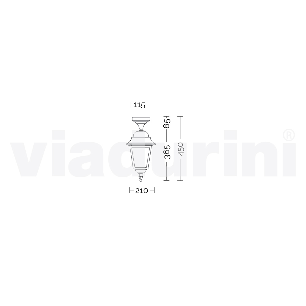 Lámpara de techo de jardín de aluminio fabricada en Italia, Aquilina Aquilina es un plafón de exterior hecho a mano en Italia con material de alta calidad: estructura de aluminio inyectado y difusor de cristal disponible: transparente o arenado.