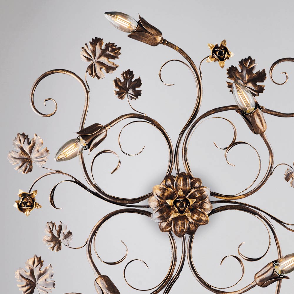 Los materiales seleccionados, como el hierro, crean un efecto elegante y una agradable iluminación. Fabricada íntegramente en Italia, esta lámpara de techo garantiza fiabilidad, robustez y atención al detalle.