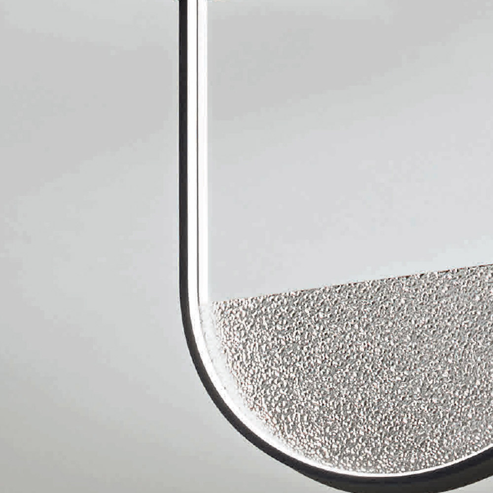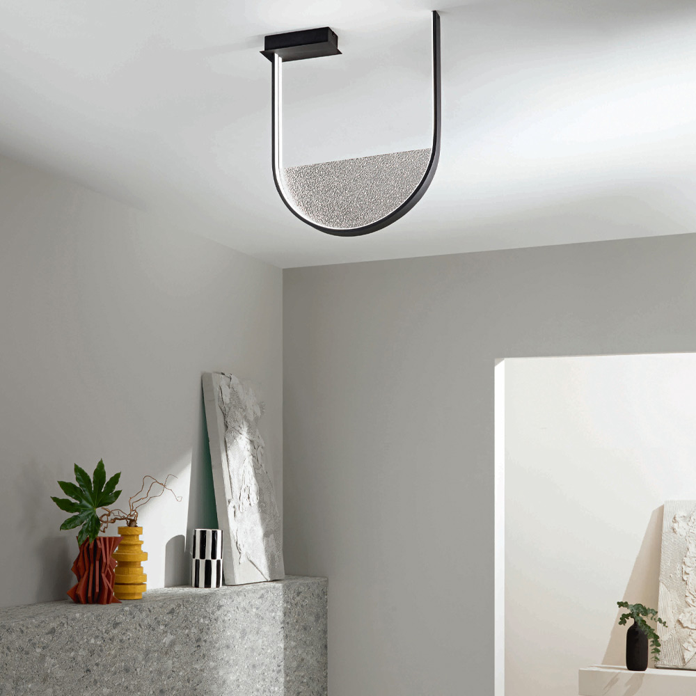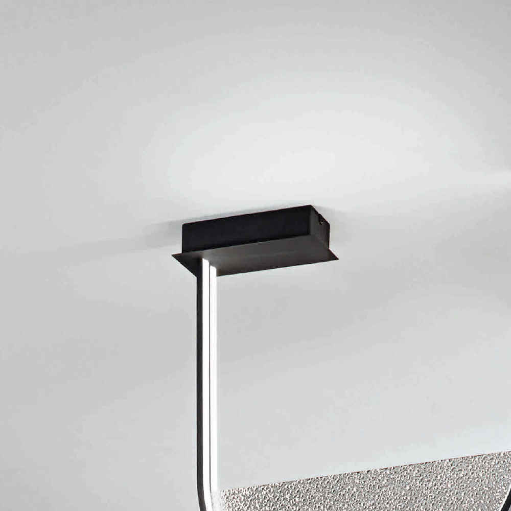 Lámpara de techo íntegramente made in Italy realizada en metal pintado de negro con inserto extraíble en cristal ahumado con luz LED regulable.