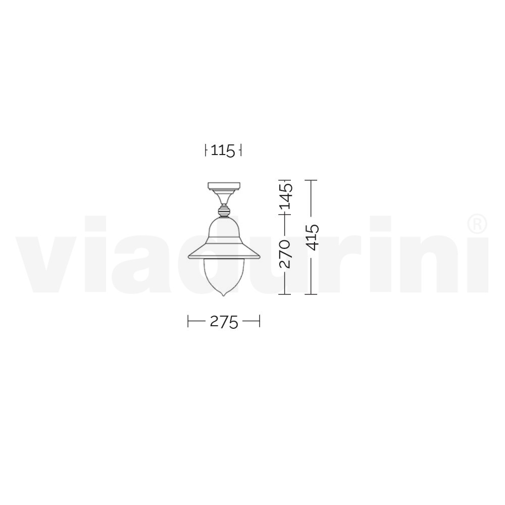 Plafón de exterior vintage en aluminio y policarbonato Made in Italy.