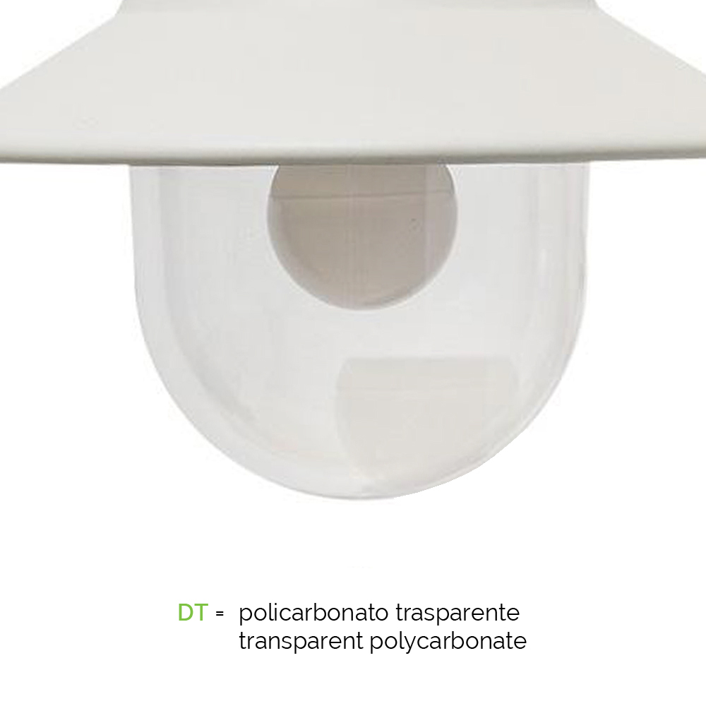 de policarbonato completo con tornillería de acero inoxidable. Un producto con una fuerte personalidad elegante, caracterizado por un estilo vintage que aumenta su singularidad y subraya su estética refinada. Ideal para amueblar ambientes exteriores domésticos o contract como jardines, porches, avenidas y paseos. Las tonalidades de color propuestas son estrictamente