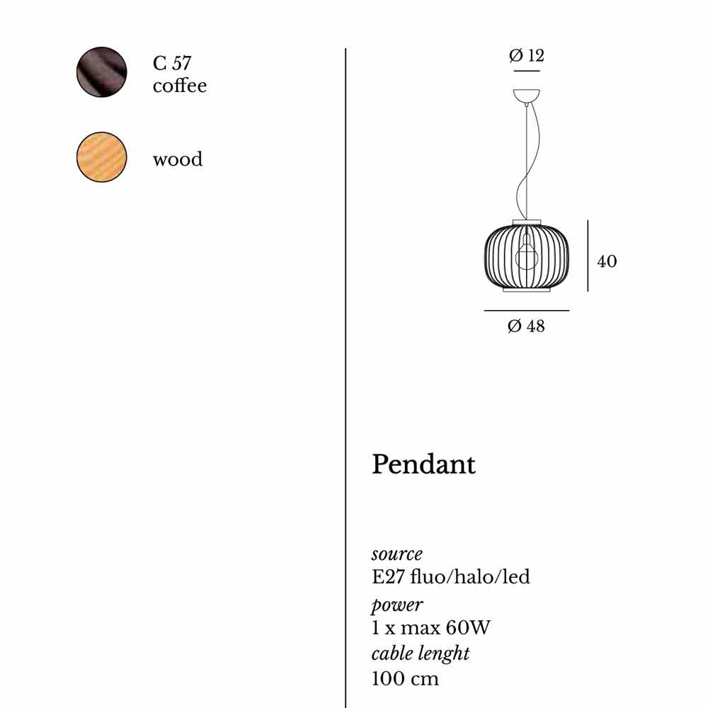 Lámpara de suspensión hechos de varilla de acero en forma de pintadas con polvos epoxídicos. Las dos bandas que cierran el cuerpo se redondean madera natural. Beren también está disponible en colores personalizados. Hacer una petición a: clienti@viadurini.it . Producto 100% Made in Italy. Bombilla: 1 x 60W max - E27 (no incluido).