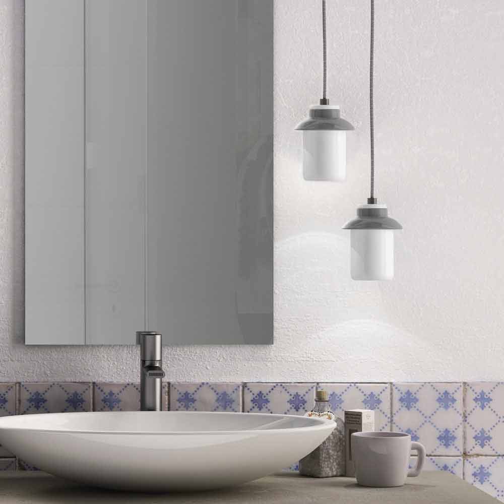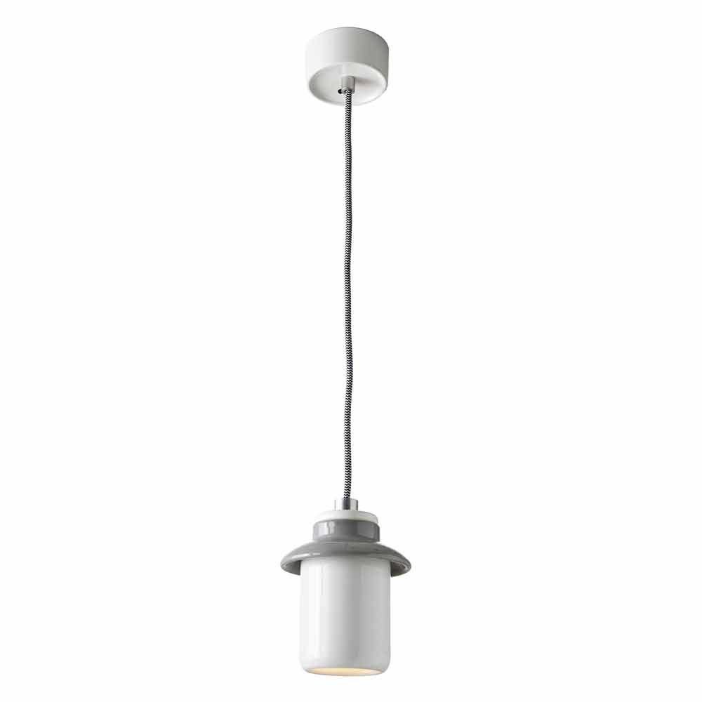 Lámpara colgante de cerámica coloreada moderna hecha en Italia Asia Asia es una lámpara de suspensión fantástica hecha de cerámica blanca y gris, con cable de tela blanco y negro y la abrazadera de cable de aluminio. Su diseño sencillo y contemporáneo se adapta a cualquier tipo de estilo y ambiente.