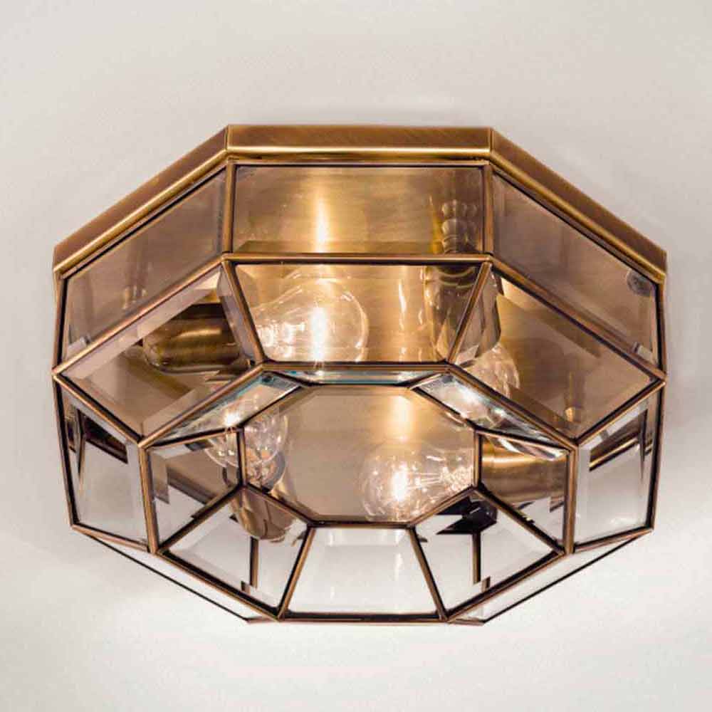 Lámpara de techo con 4 luces octogonales en latón y vidrio de diseño artesanal made in Italy.