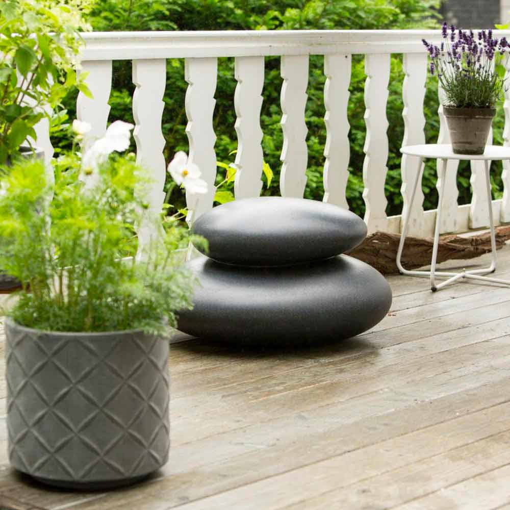 Lámpara de pie con opción de ataque interior o exterior de diseño moderno en forma de roca en polietileno coloreado.